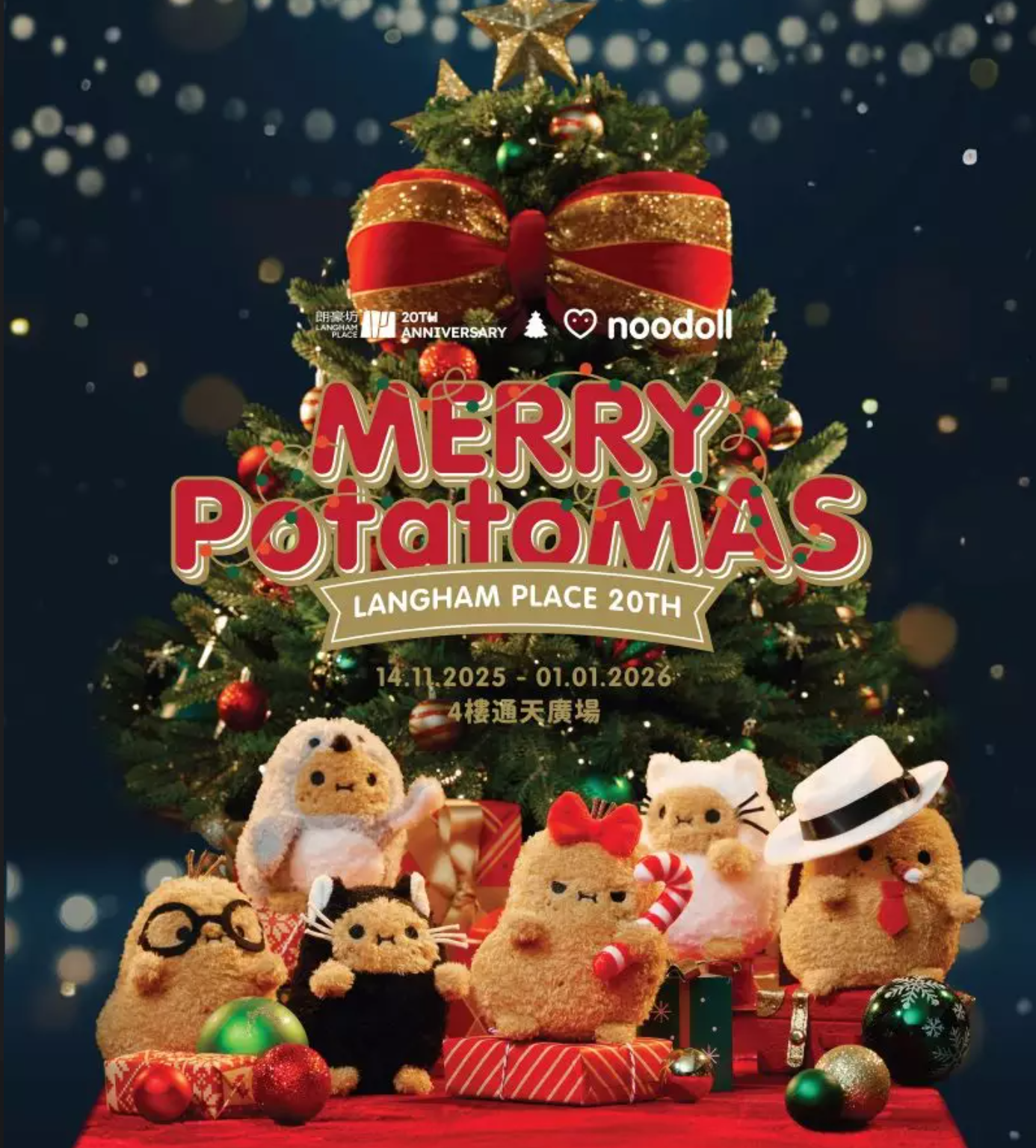 朗豪坊20周年以「WoW!WePLAY」品牌精神貫穿全年,作為年末壓軸鉅獻,朗豪坊特別邀請英國爆紅品牌Noodoll薯仔家族首度登陸香港,融合本地節慶氛圍,打造全港矚目的聖誕盛事「Langham Place Noodoll:Merry PotatoMAS」!