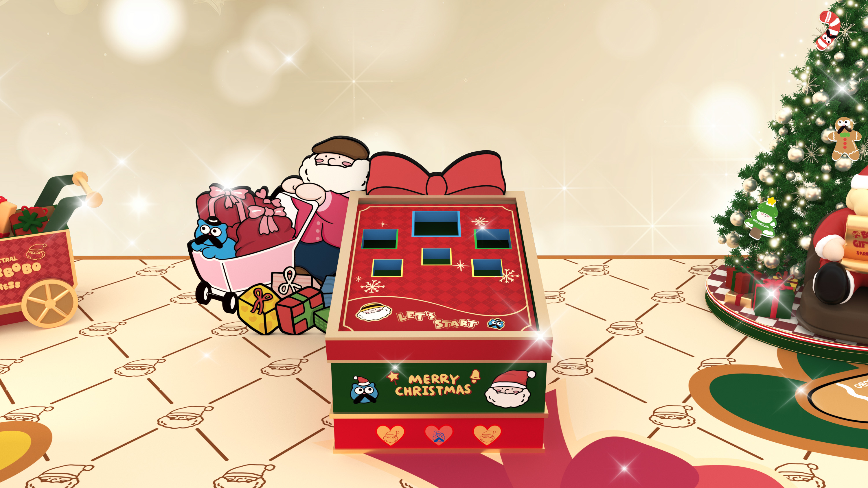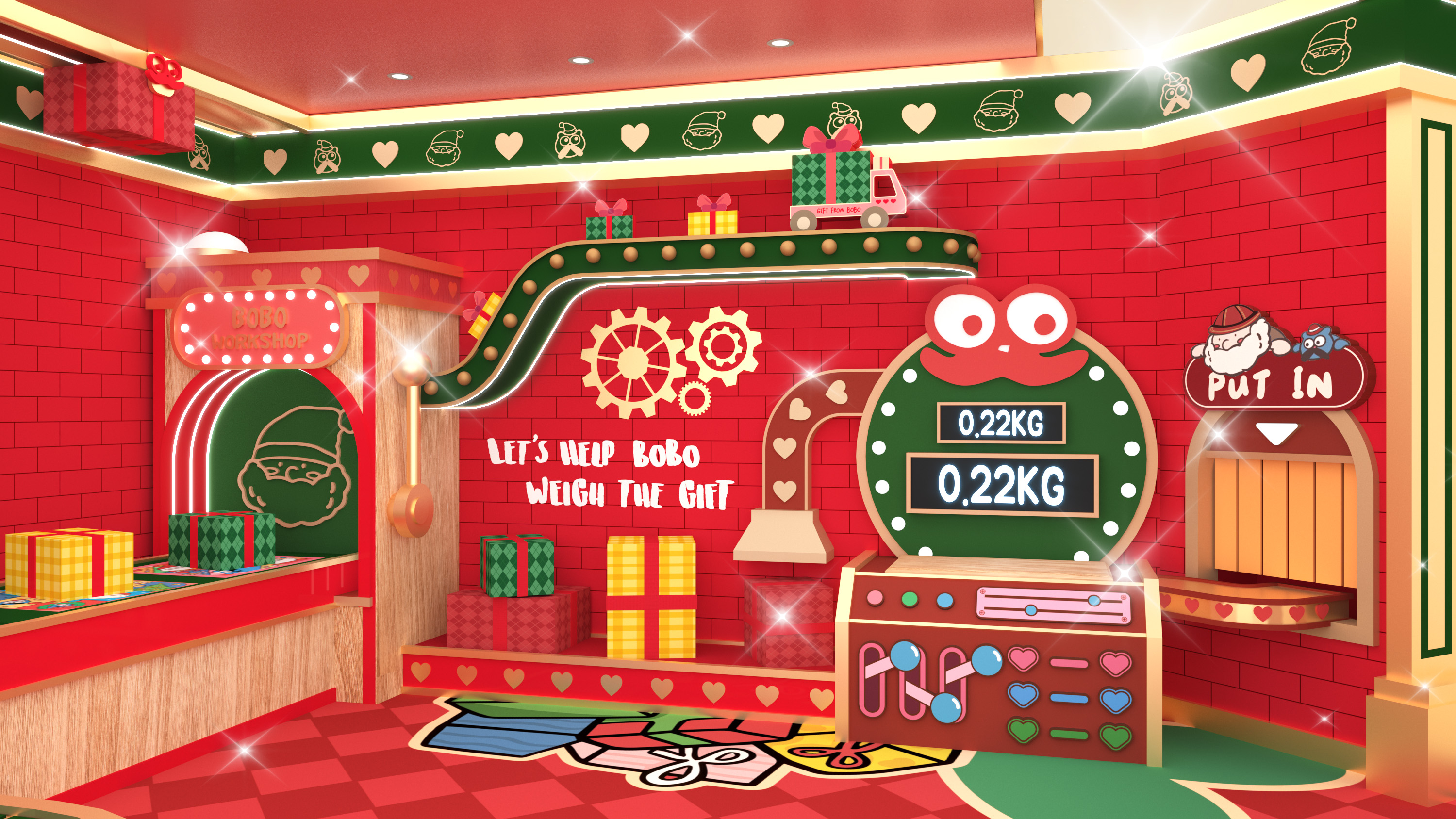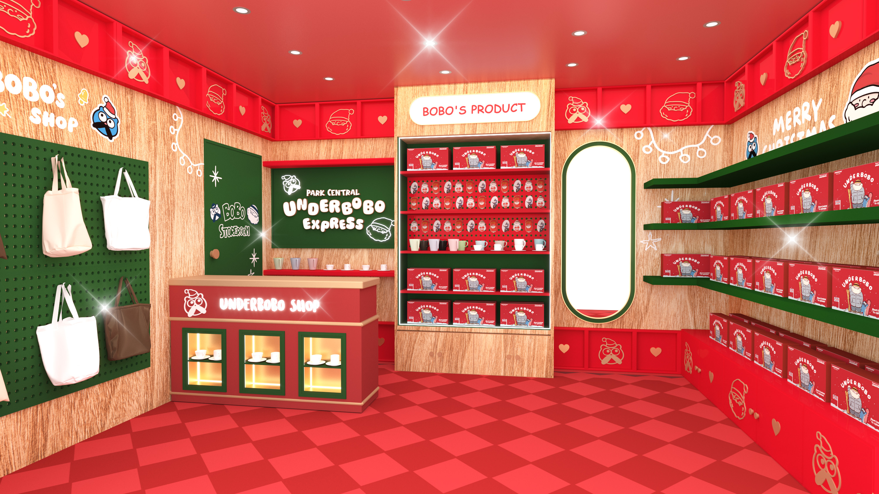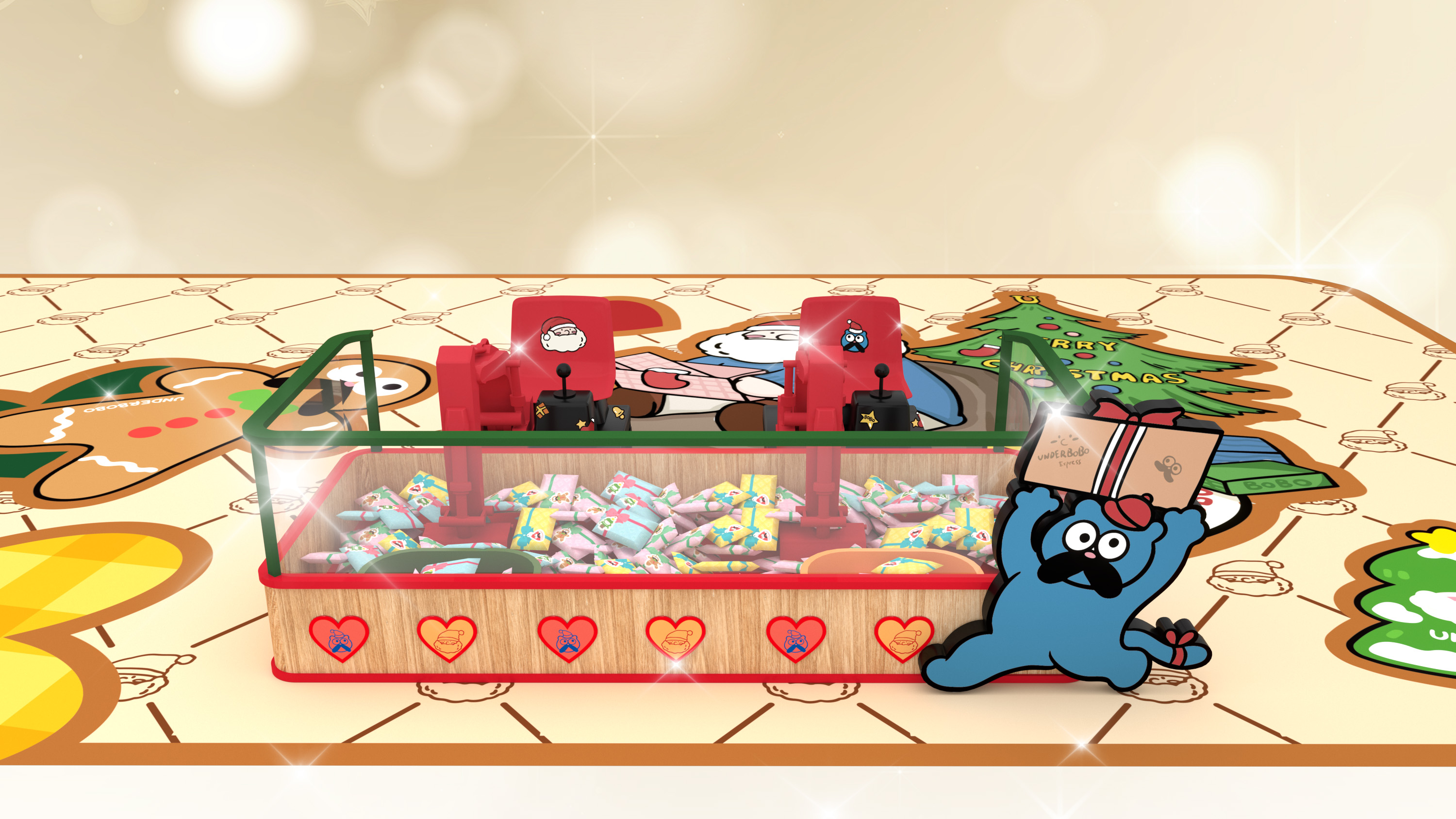魔法禮物工場設有7大超吸睛打卡場景,包括:2.5米高巨型UNDERBOBO及可愛貓咪BOZO,2位萌爆角色正熱情地向大家揮手;至於鬼馬的小朋友則萬勿錯過「UNDERBOBO鬼馬哈哈鏡」的趣味扭曲效果,笑鬧中捕捉搞怪瞬間;走進「聖誕老人辦公室」,一起為聖誕老人分擔忙碌工作;「藍色貓貓BOZO衣帽間」則讓你化身精靈,試穿可愛配件,打造派對最佳TOTAL LOOK!另一邊廂,1.3米高全新英倫紳士造型現身的UNDERBOBO正趕緊於佳節前派送禮物,推着聖誕禮物車穿梭;場內更有高達2.8米的炫亮聖誕樹,快來打卡!