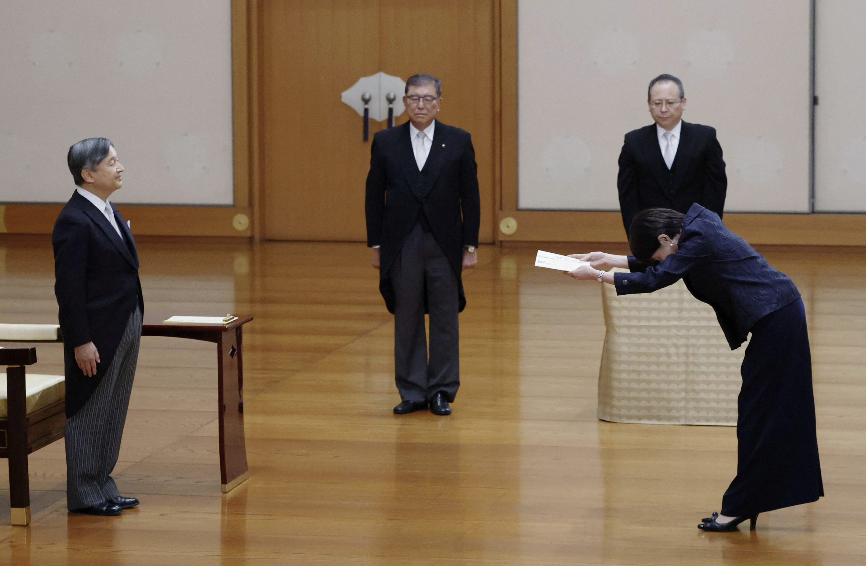【點新聞報道】當地時間10月21日晚上8時56分左右,高市早苗內閣大臣認證儀式結束,高市內閣正式成立。當天早些時候,新當選的日本首相高市早苗內閣名單公布,包括內閣官房長官木原稔、財務大臣片山皋月、防衛大臣小泉進次郎、總務大臣林芳正、外務大臣茂木敏充等人。其中有10人為首次入閣,此外還有2名內閣成員為女性。