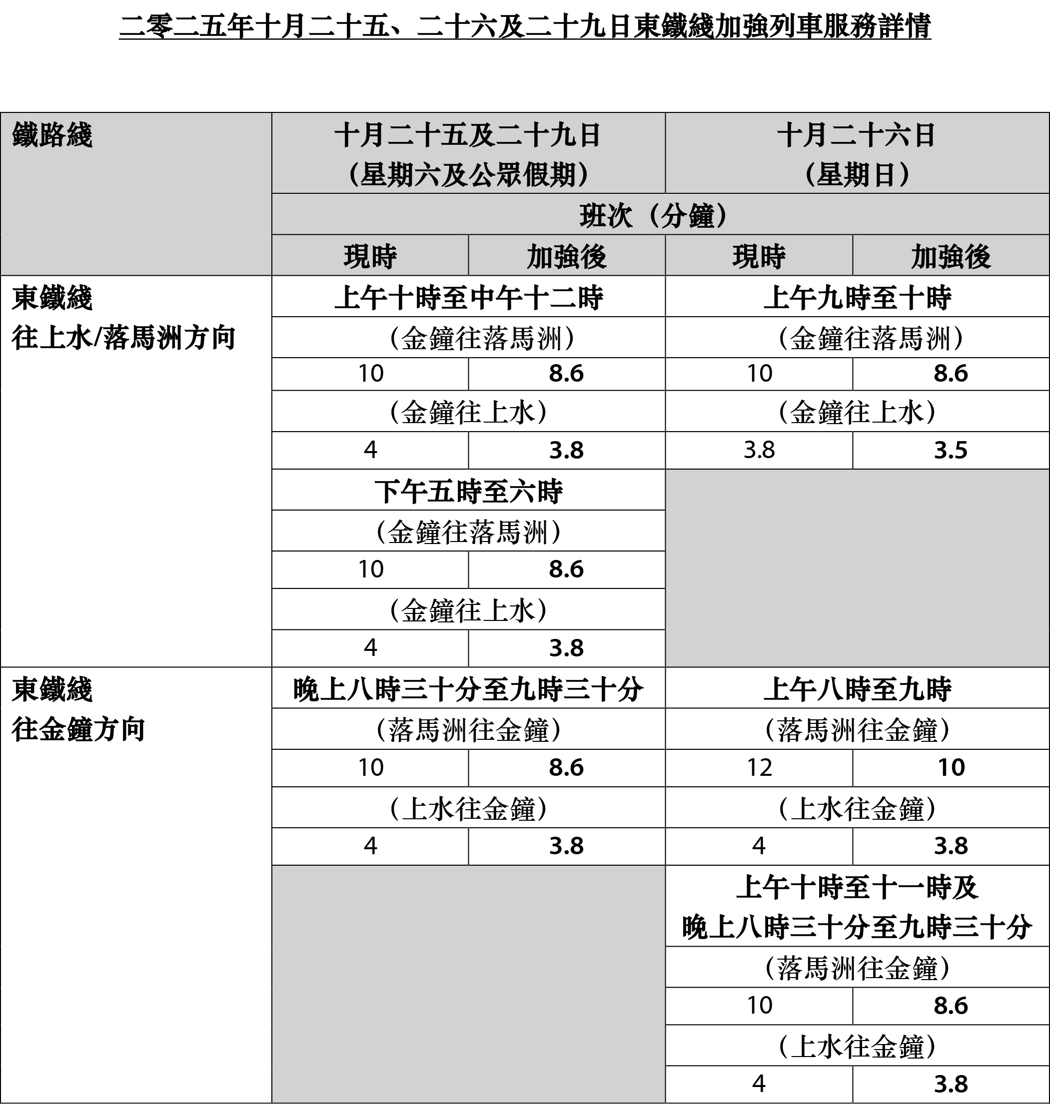 港鐵周末及重陽節加強東鐵綫班次 方便市民拜山