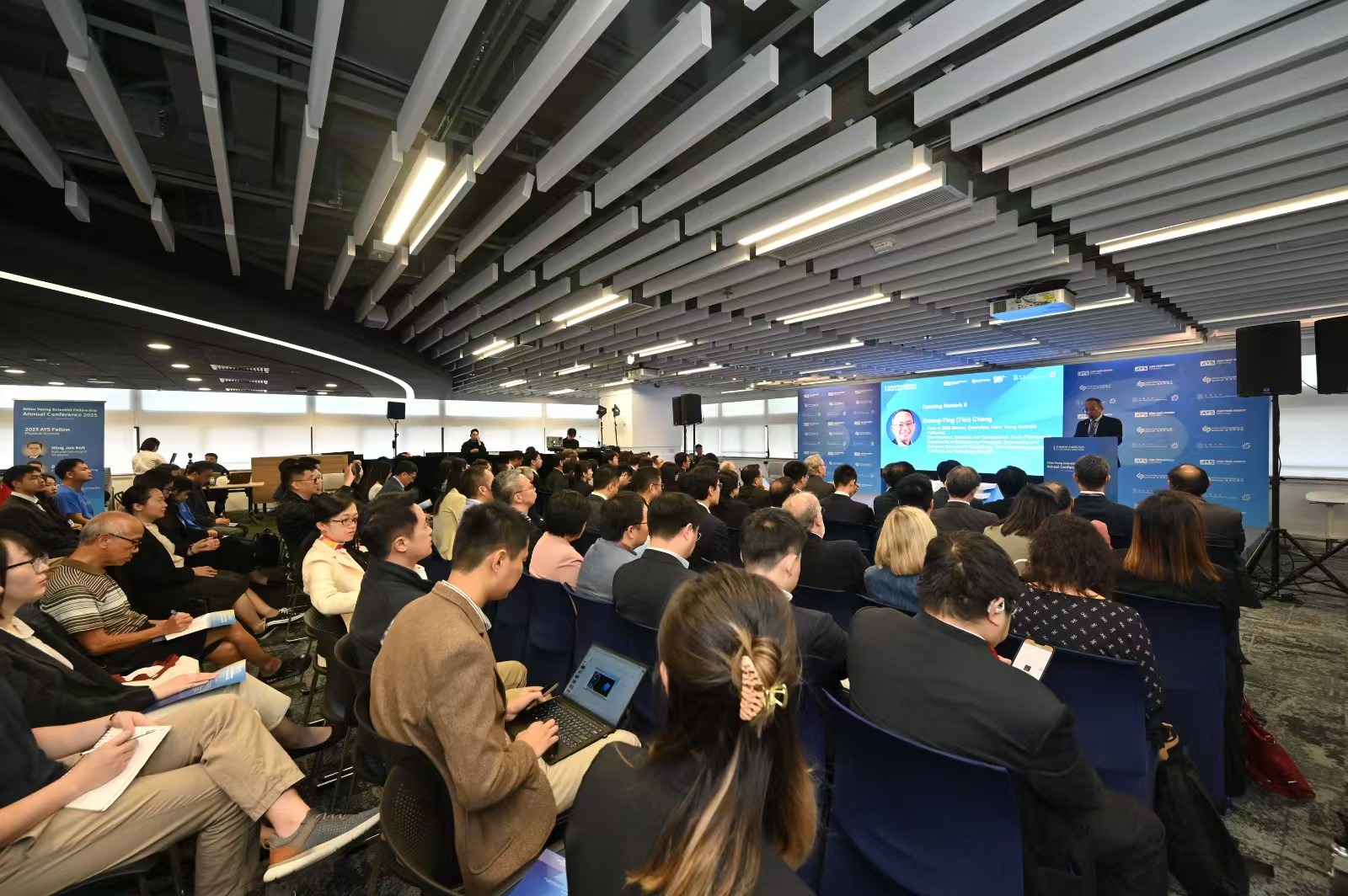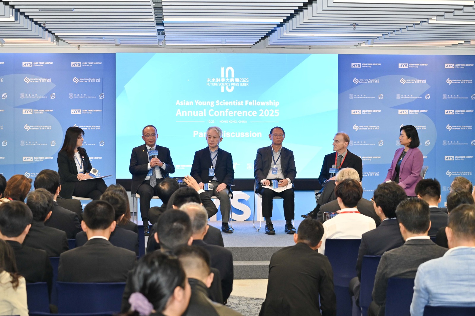 香港大學副校長(教學)施啟正,以及亞洲青年科學家基金項目2025指導委員會主席兼香港科技大學副校長(研究及發展)鄭光廷致開幕辭。在專題討論環節,科學家們探討如何建設亞洲科研與創新生態系統。討論由香港青年科學院副院長、香港大學協理副校長(研究及創新)馬桂宜擔任主持,參與討論的嘉賓還包括2013年諾貝爾生理學或醫學獎得主Randy SCHEKMAN、鄭光廷教授,以及亞洲青年學家基金項目2025生命科學學科評選委員會成員等。