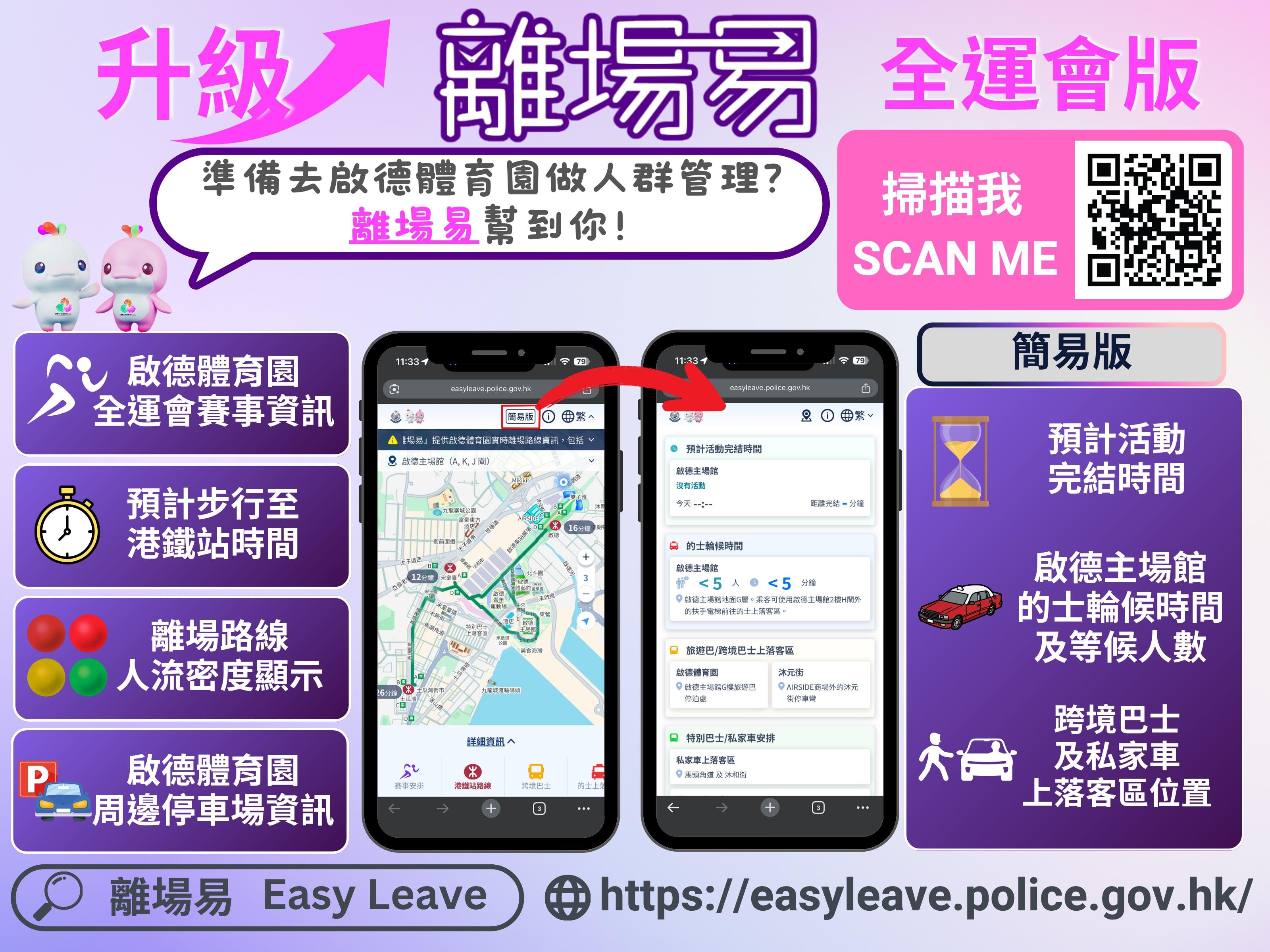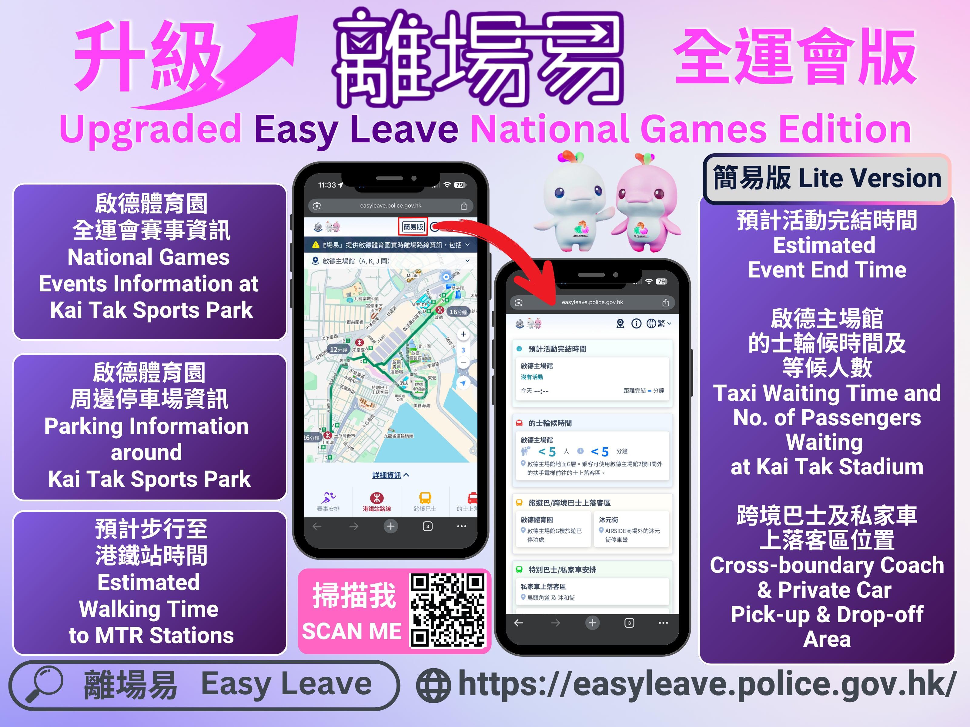 【點新聞報道】為持續提升觀眾使用「離場易」(Easy Leave)網站時的體驗,並配合第十五屆全國運動會和全國第十二屆殘疾人運動會暨第九屆特殊奧林匹克運動會的舉行,香港警務處東九龍總區行動部於2025年10月推出「離場易」升級版。