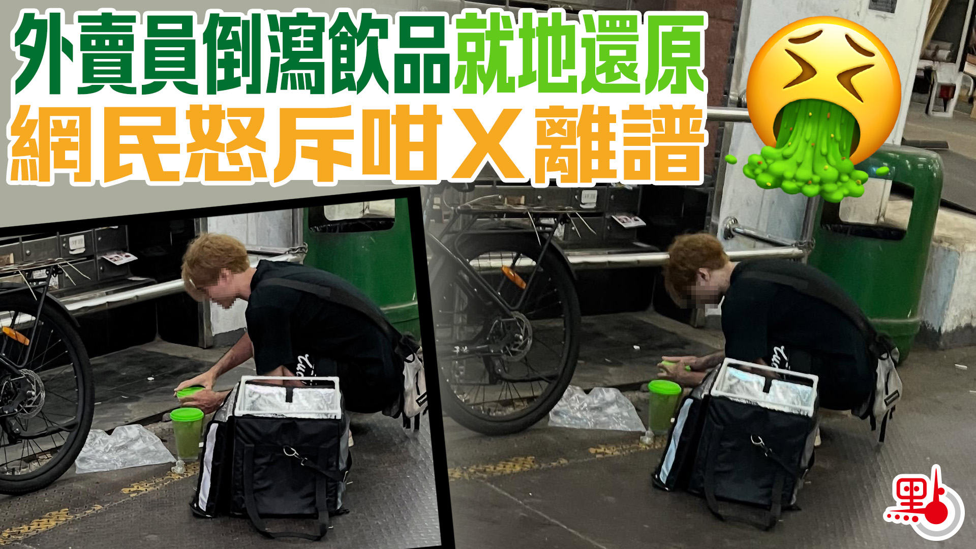 外賣員倒瀉飲品就地還原 網民怒斥咁X離譜