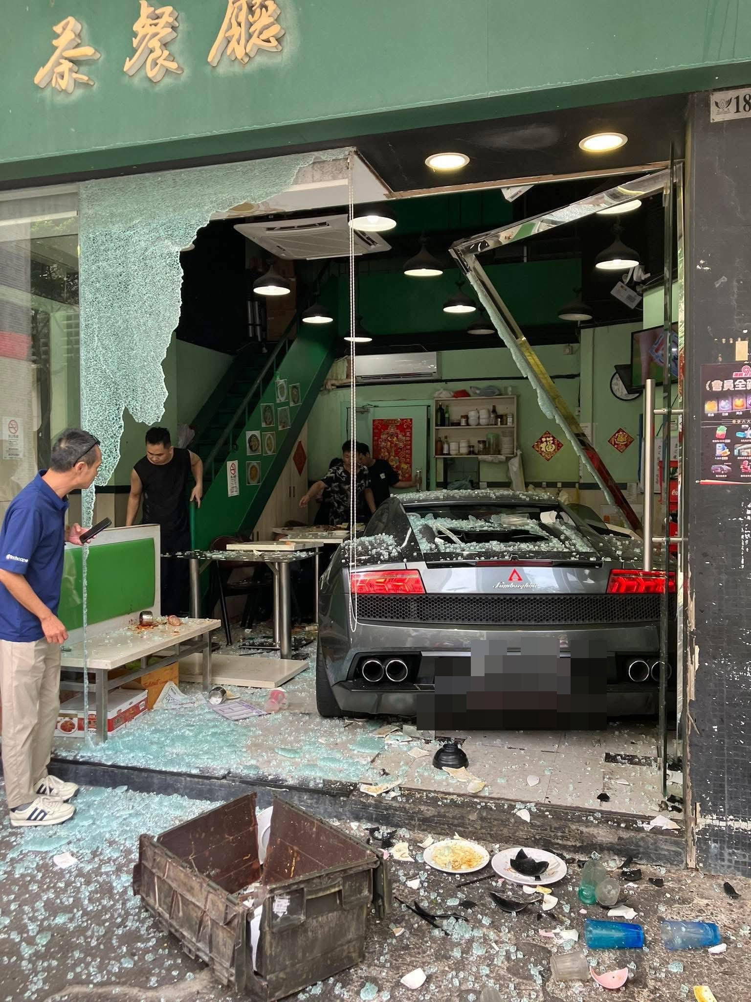 網上圖片和視頻可見,店面的玻璃大門被撞毀,碎片與碗碟散落一地。一名老翁頸部染血,坐下待援。有目擊食客大驚:「食食下飯飛X咗架車入嚟」,更有網民形容「死神來了」。