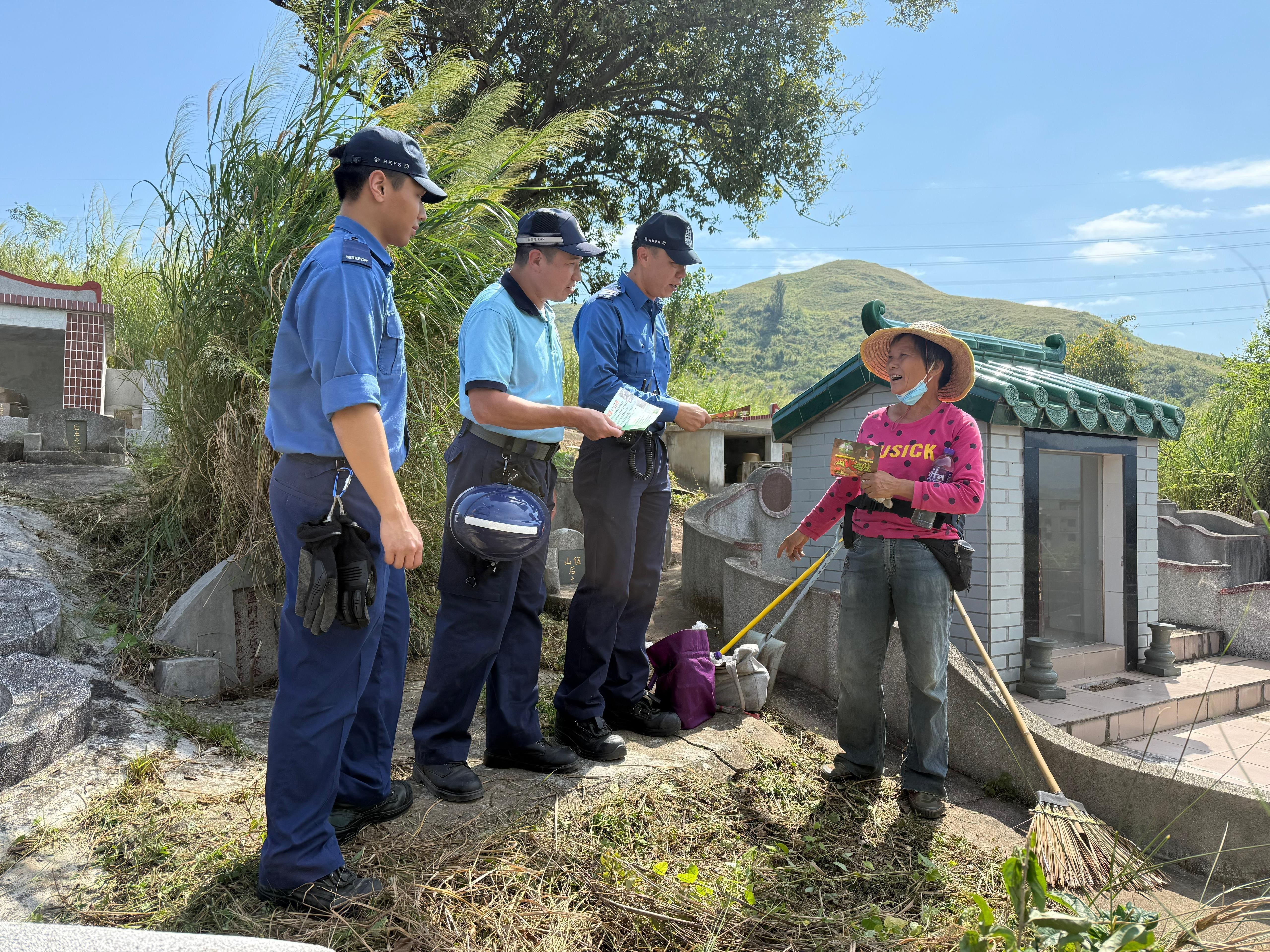 另一方面,消防處積極集合地區力量進行防火宣傳,透過消防處社區聯動網絡與地區防火委員會加強聯繫,並聯同消防處社區應急先鋒名譽會長會及消防處社區應急先鋒,由剛過去的周末開始,於多個掃墓熱點及鄉郊地區向市民推廣防火安全教育。
