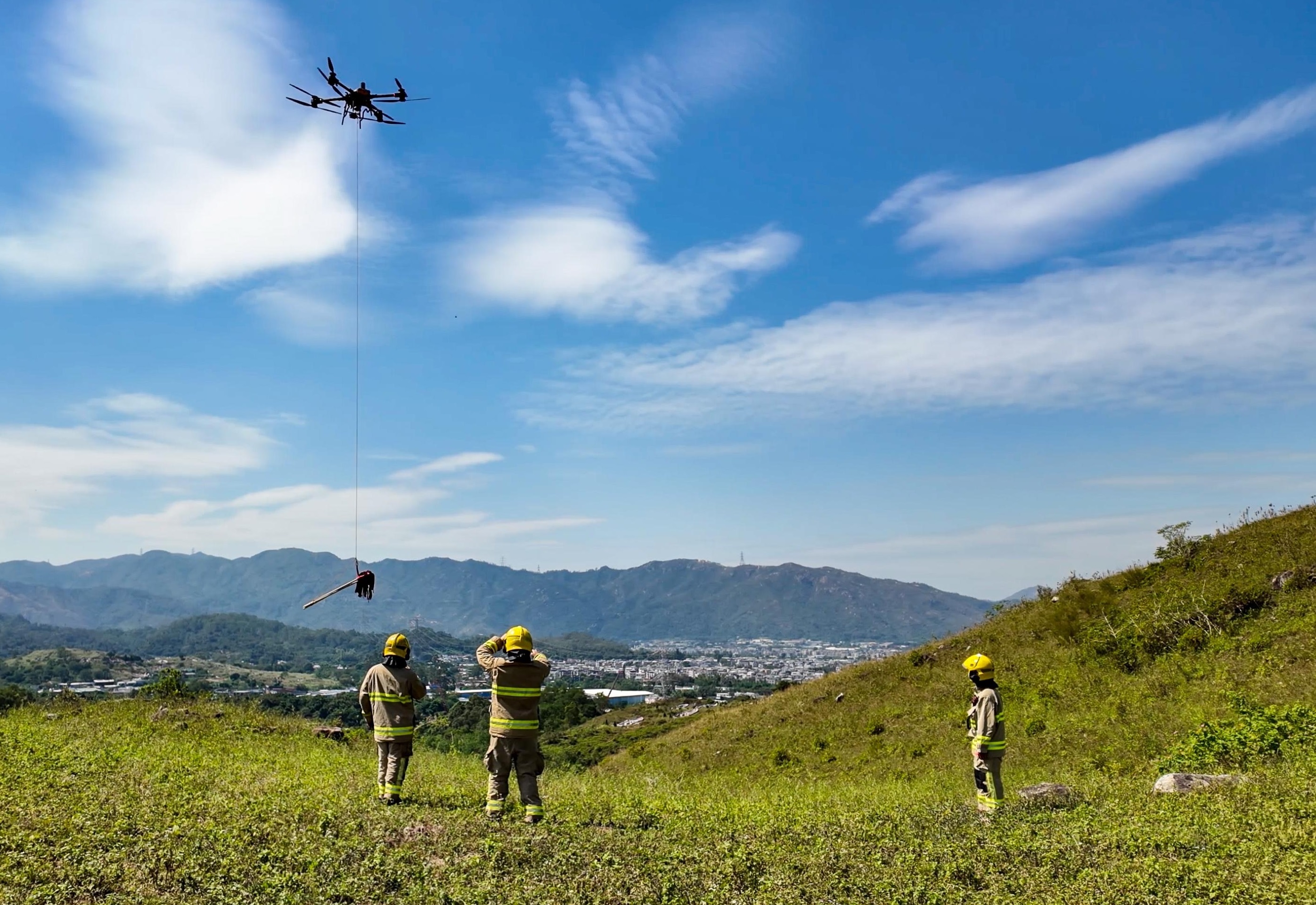 在科技應用方面,消防處除使用搭載揚聲器的無人機於掃墓熱點廣播防火信息外,亦首次應用兩個低空經濟「監管沙盒」項目,包括運用可負載30公斤的大型無人機運送滅火工具,如背泵及山草拍等,提升行動效率;另外亦使用無人機搭配自動化無人機機場,在郊野地區自動定期巡邏,並配合人工智能技術以偵測早期火災,有助救援人員能更早掌握現場情況及作出相應部署。