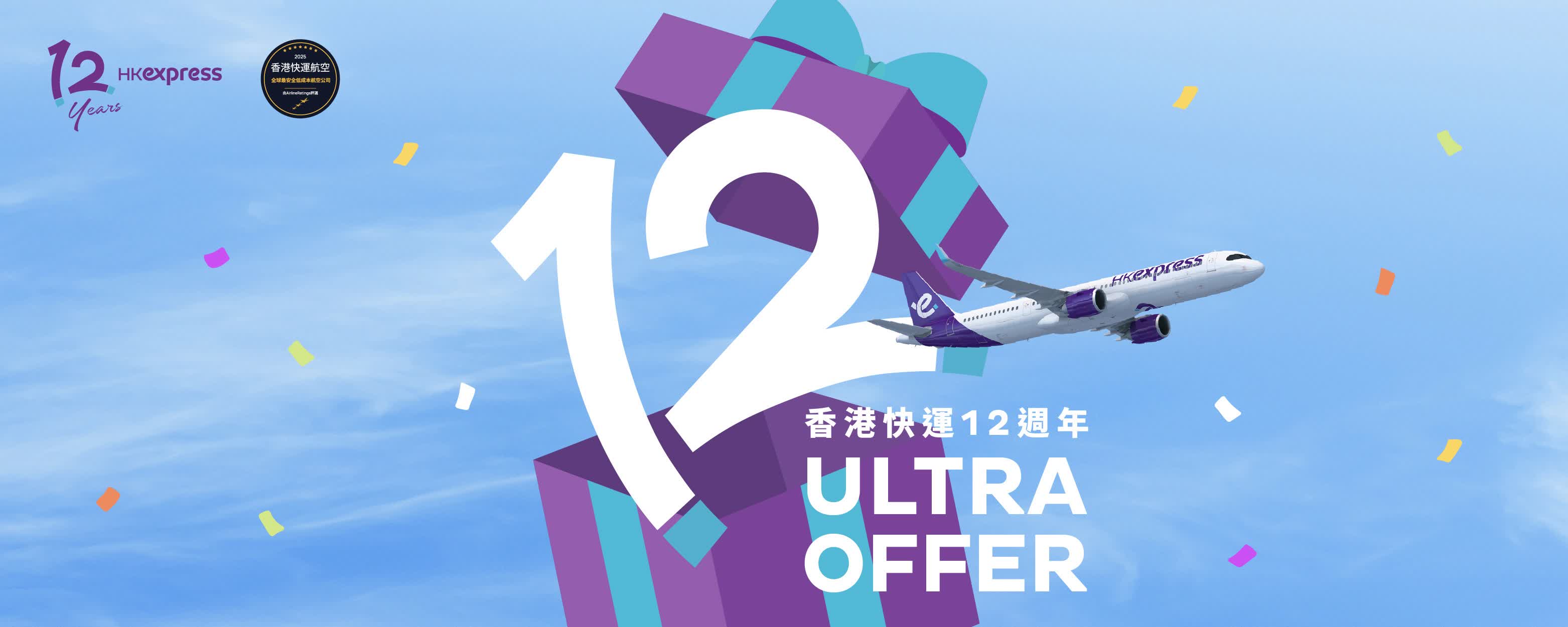 【點新聞報道】香港快運12周年慶典,特別推出12周年Ultra Offer,以超震撼優惠回饋旅客,「經濟飛」單程票價低至港幣12元(包括一件隨身物品及一件登機行李),航點包括受港人歡迎旅遊熱點泰國、台灣等,想去日本或韓國,「經濟飛」單程票價亦低至港幣112元,由今日(27日)上午10時起至10月29日晚上11時45分,只需登入香港快運官網或微信小程序,即可享此優惠,優惠數量有限。