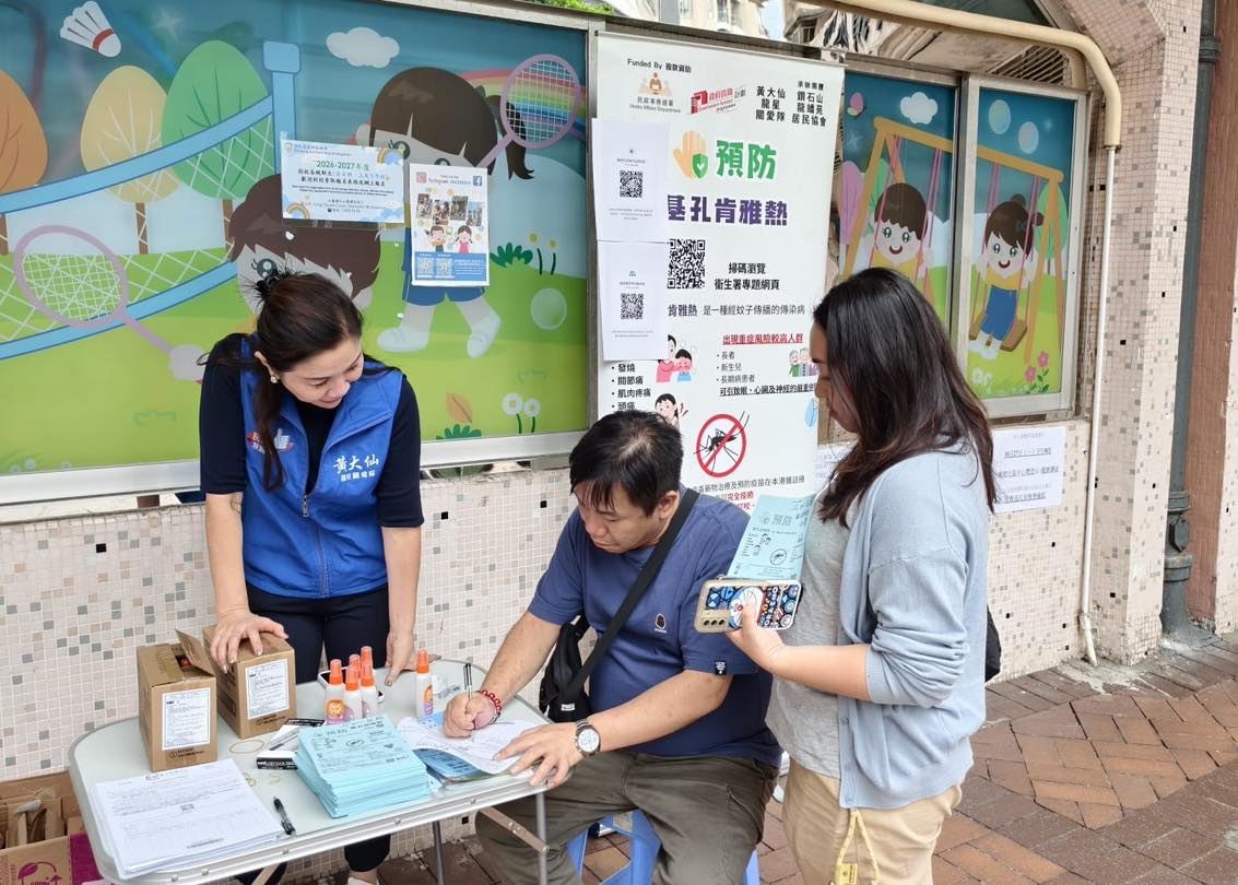 麥美娟指出,為進一步強化防控效果,關愛隊也協助黃大仙民政事務處、衞生署防護中心及食物環境衞生署於今晚在鳳德社區中心舉辦專題講座。講座由專業人士詳細講解基孔肯雅熱的傳播途徑、臨床表現及科學防治方法,吸引了約130位居民積極參與,幫助大家掌握正確的防蚊滅蚊知識。關愛隊將繼續發揮社區網絡優勢,在注重個人防護的同時,協助做好環境衞生,共同築牢社區健康防線。