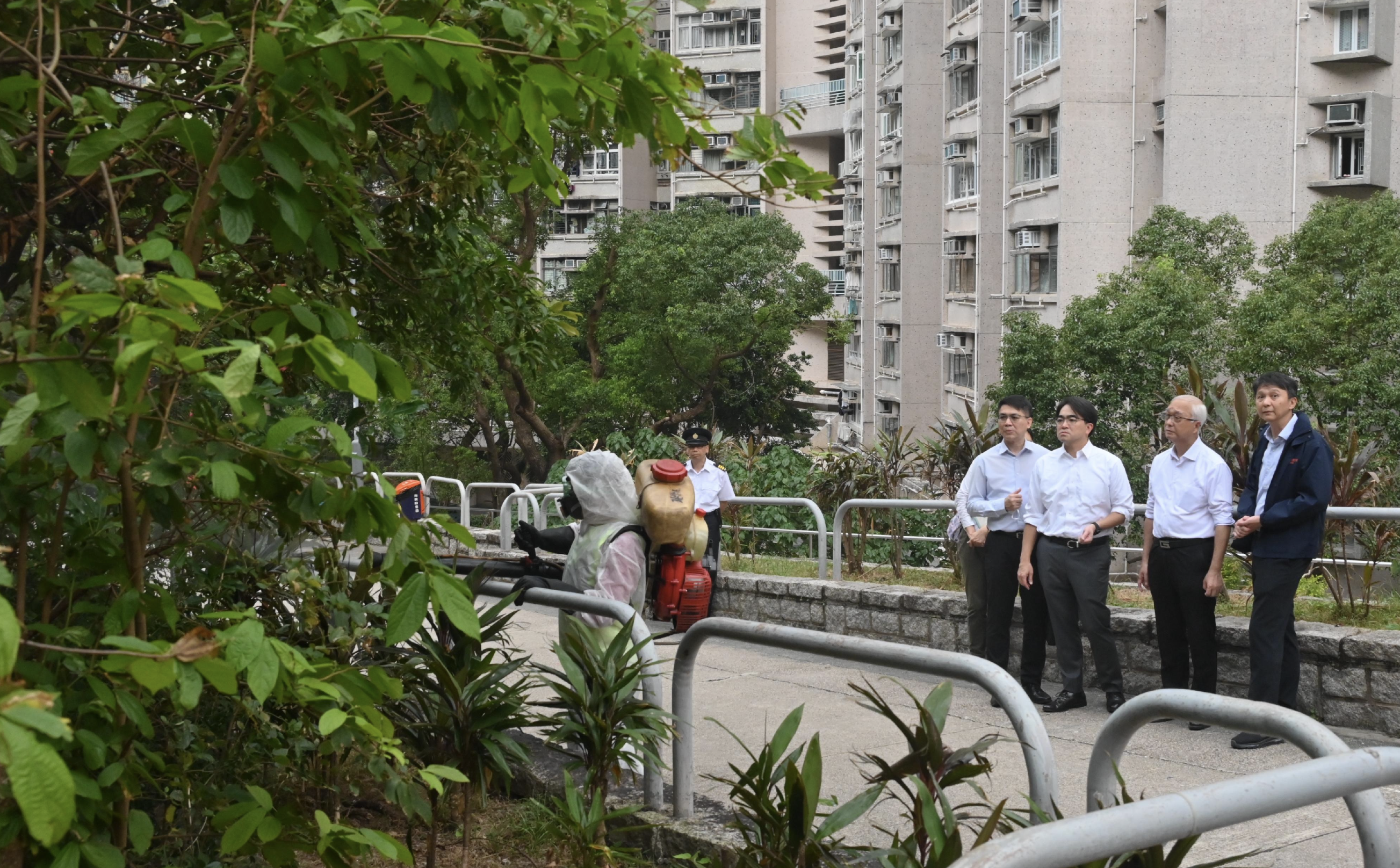 環境及生態局(環境局)局長謝展寰今日下午在食物環境衞生署(食環署)署長吳文傑、助理署長(行動)蔡家偉及相關部門代表陪同下,到黃大仙鳳德邨及附近一帶視察地區加強預防基孔肯雅熱的工作。