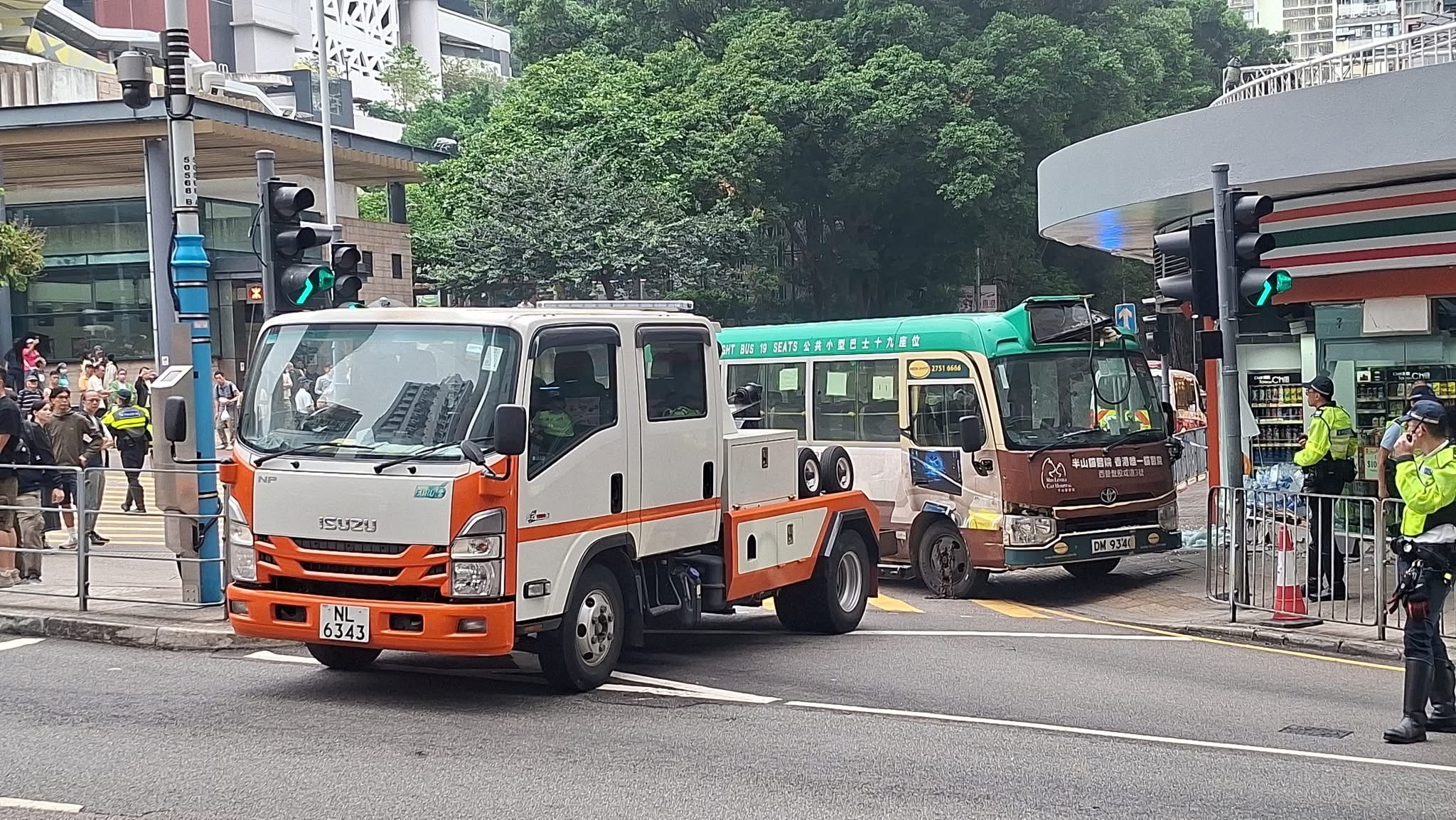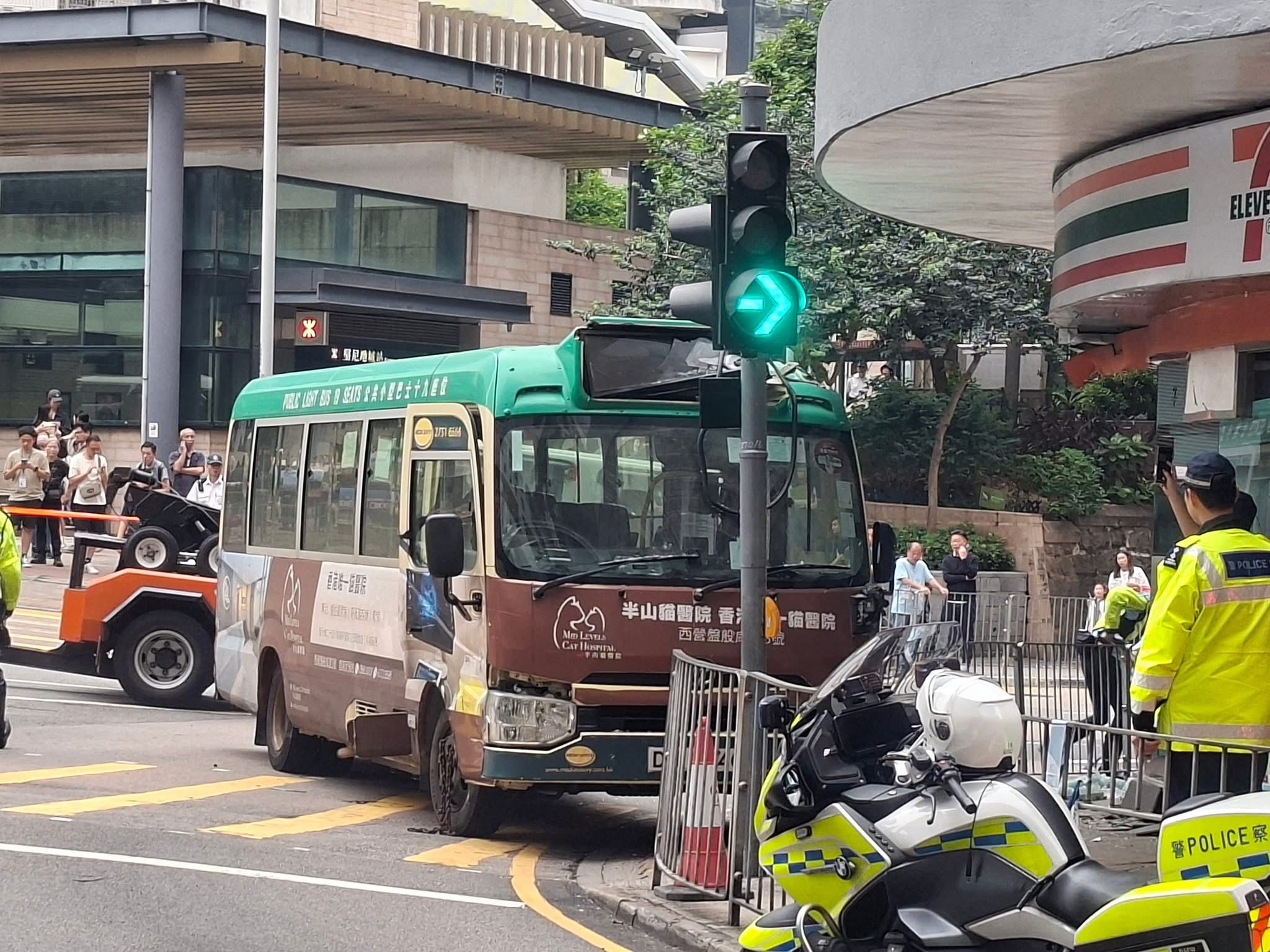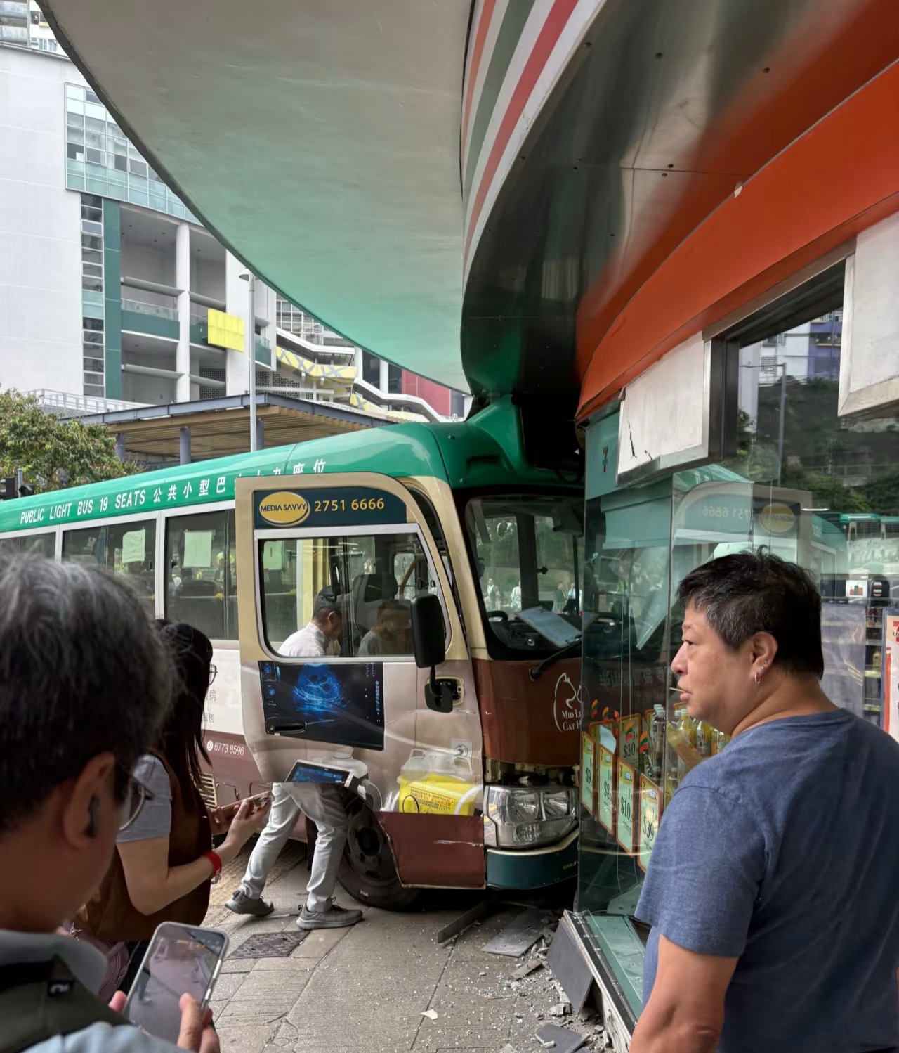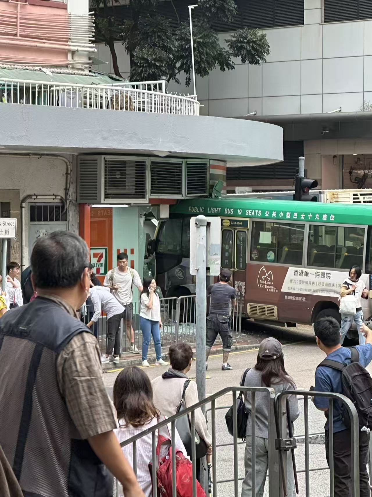 (有片)堅尼地城綠Van衝進711 玻璃粉碎貨櫃倒塌「門口能聞到啤酒味」