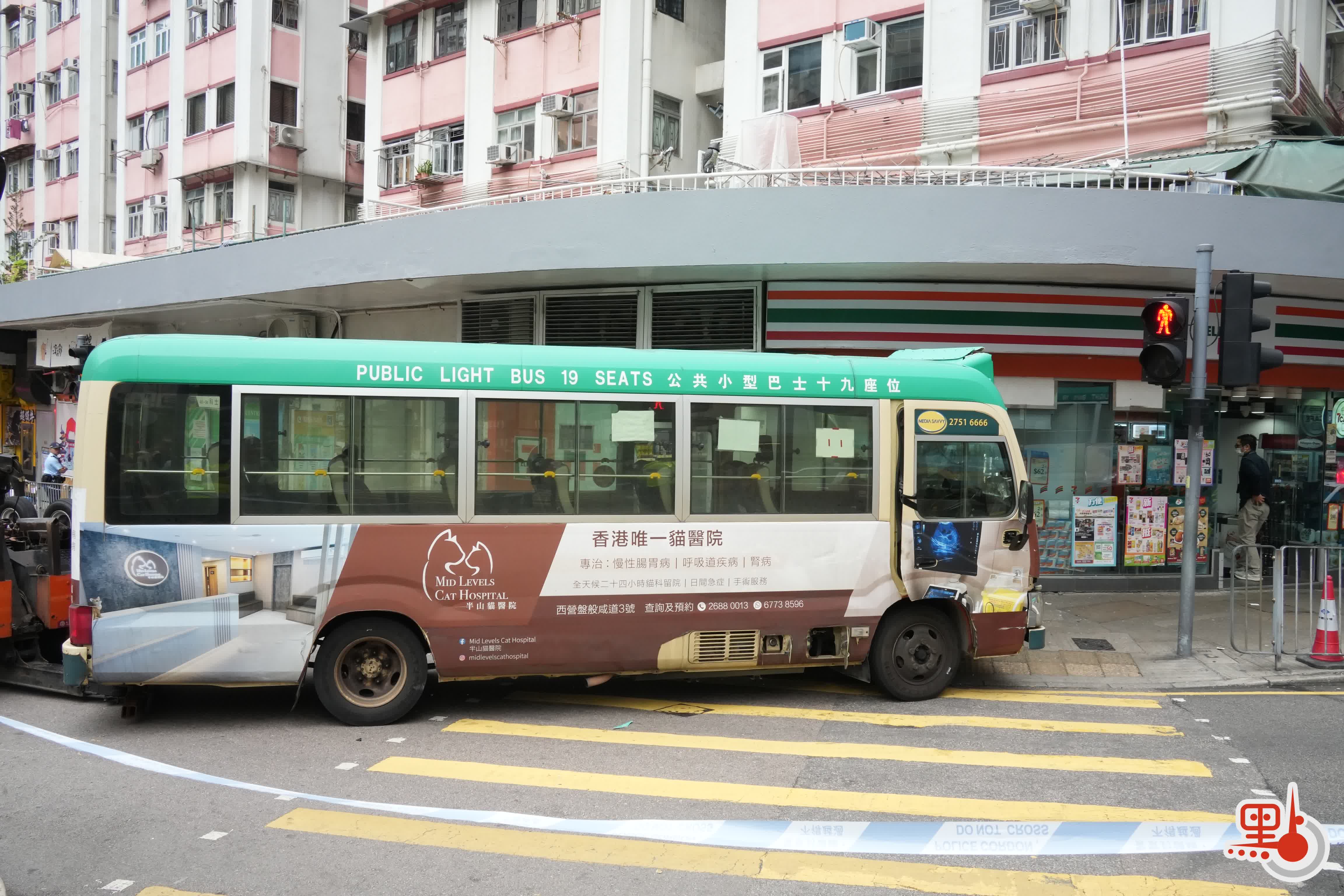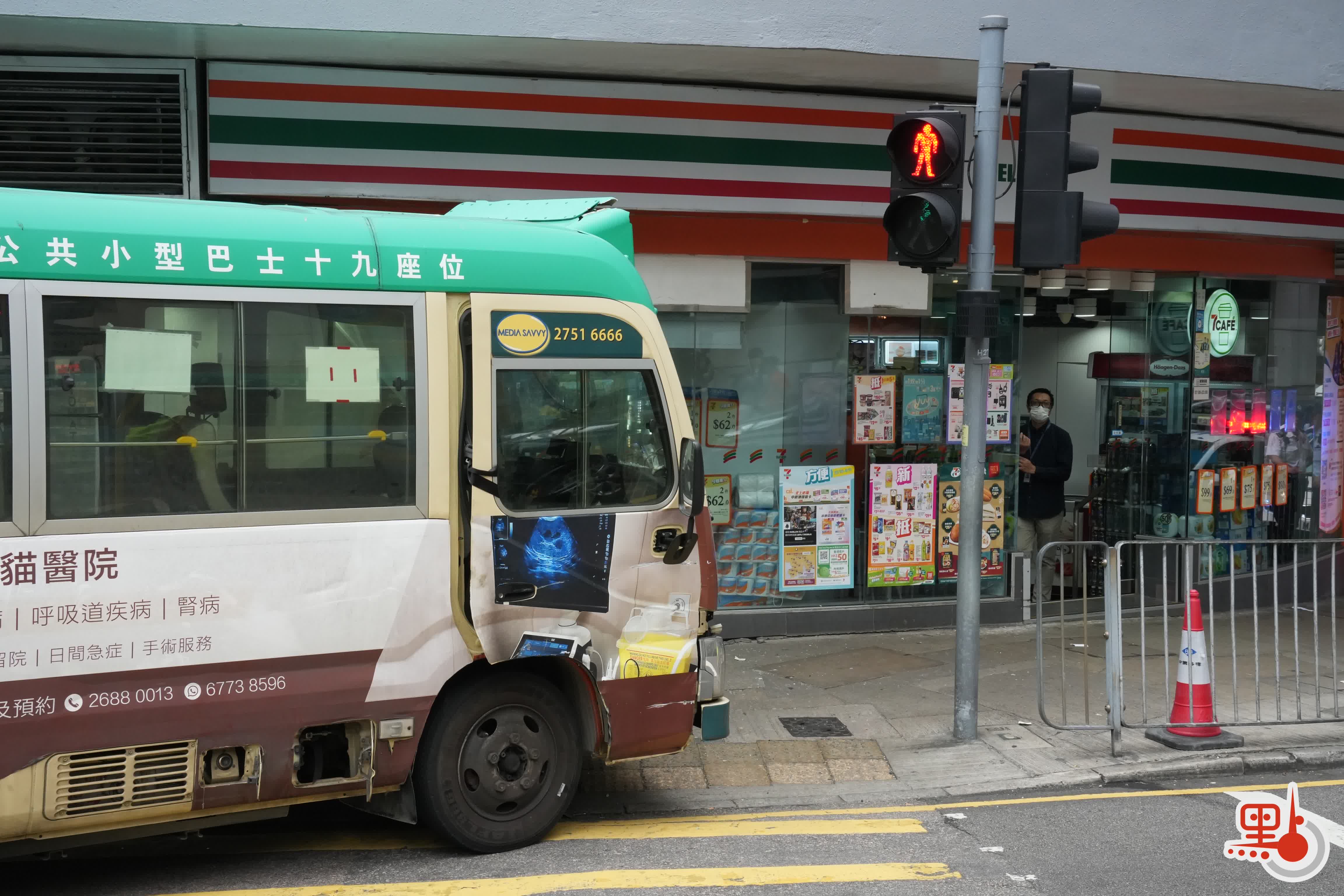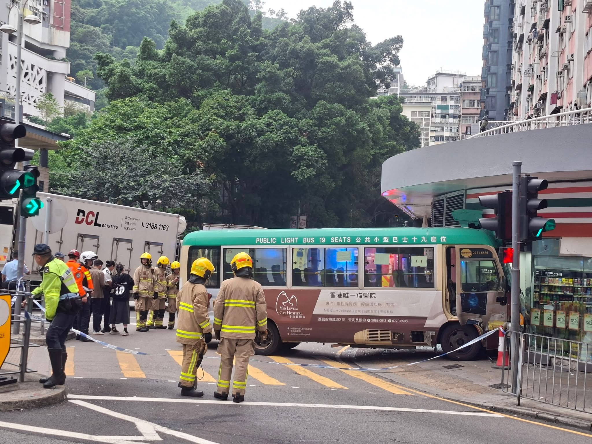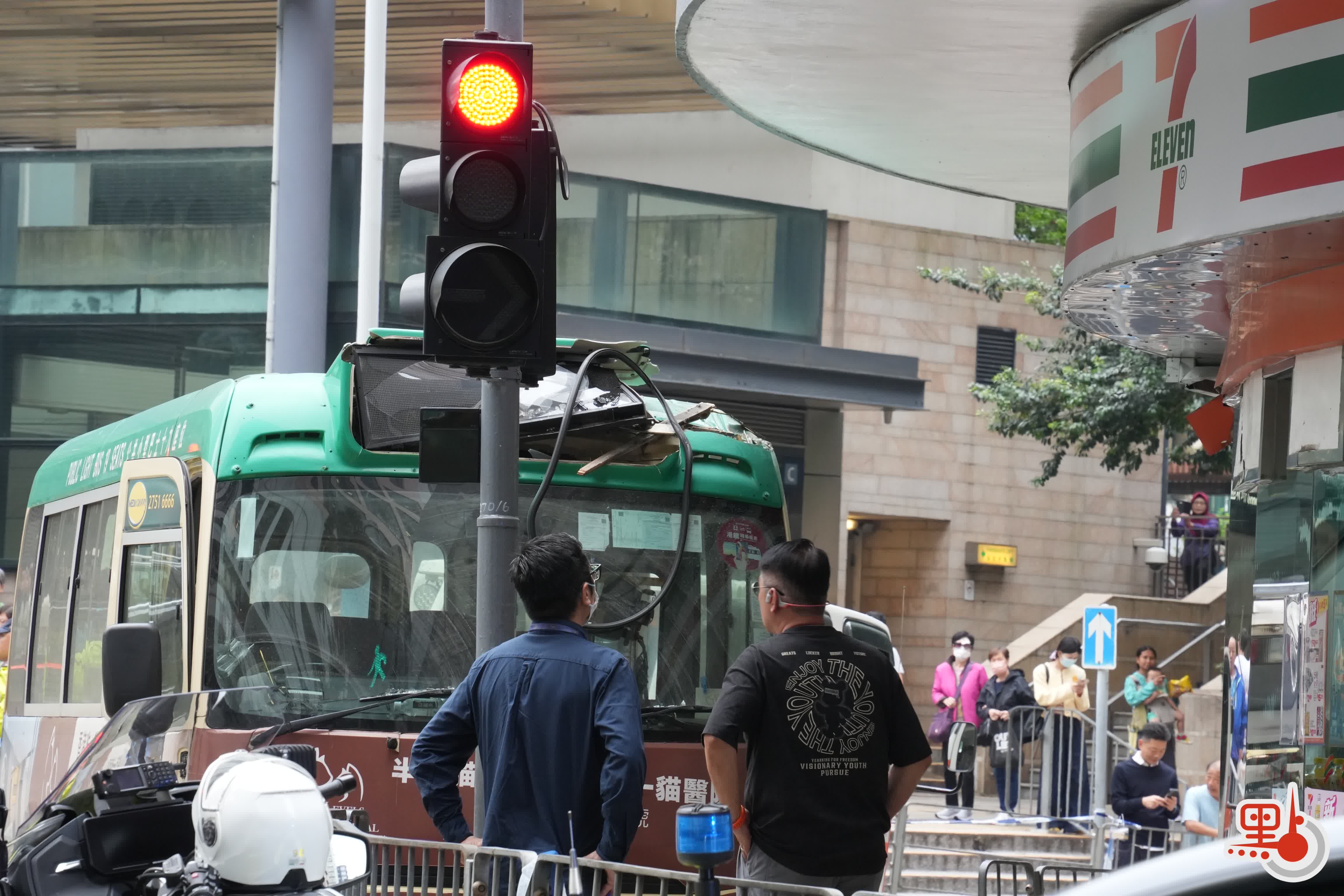 (有片)堅尼地城綠Van衝進711 玻璃粉碎貨櫃倒塌「門口能聞到啤酒味」