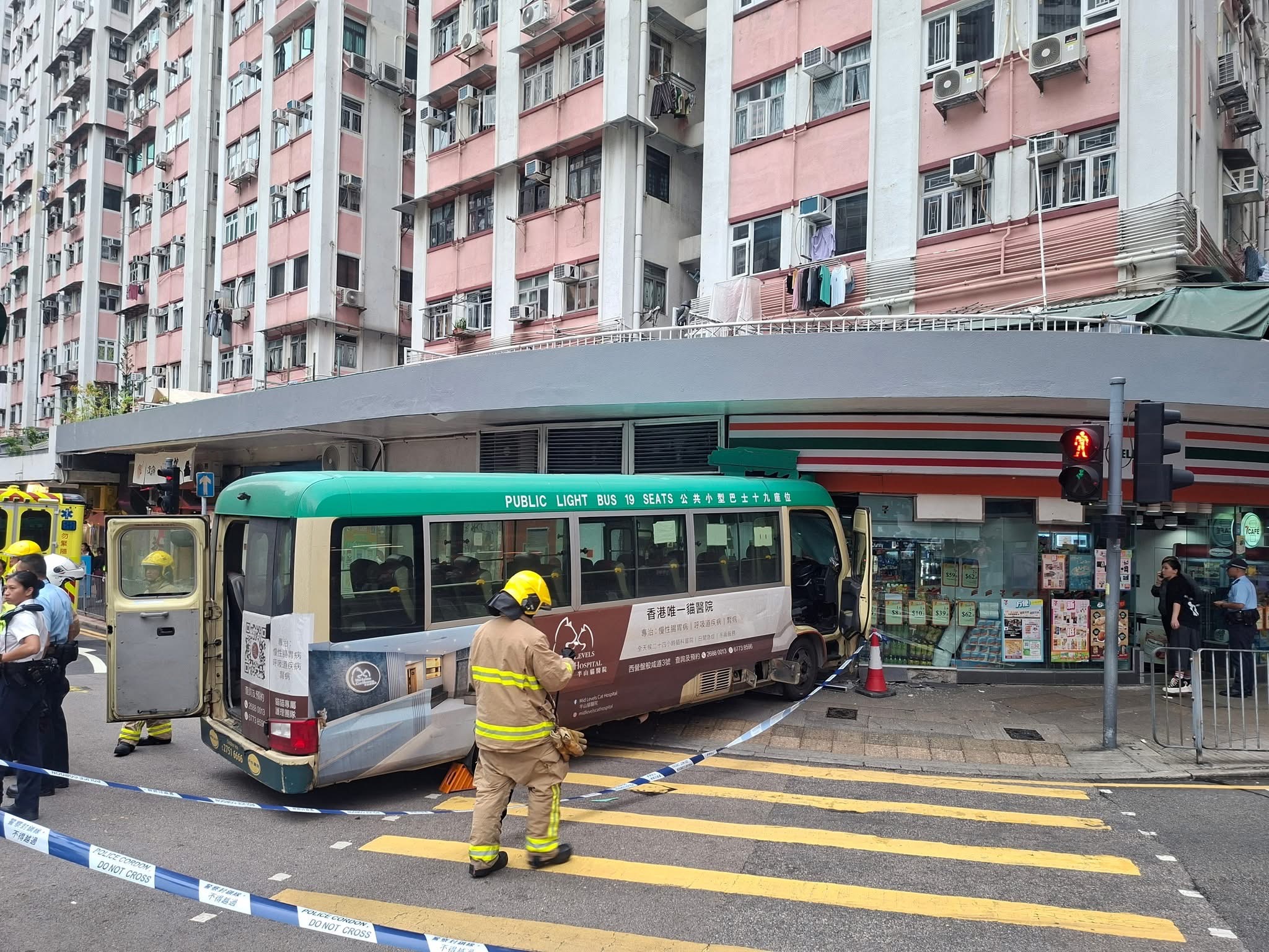 【點新聞報道】西環科士街發生嚴重交通意外。今日(28日)下午2時許,中西區堅尼地城士美非路街市對開,一輛小巴於紅綠燈處衝上斑馬線與行人路,直接將車駛進711便利店。救援人員接報趕到,2名老婦受驚跌倒地上受傷,兩人均清醒,小巴司機亦輕傷,在場接受治療後拒絕送院,被帶署調查。兩老婦則由救護車送院治理。警方正調查車禍原因。