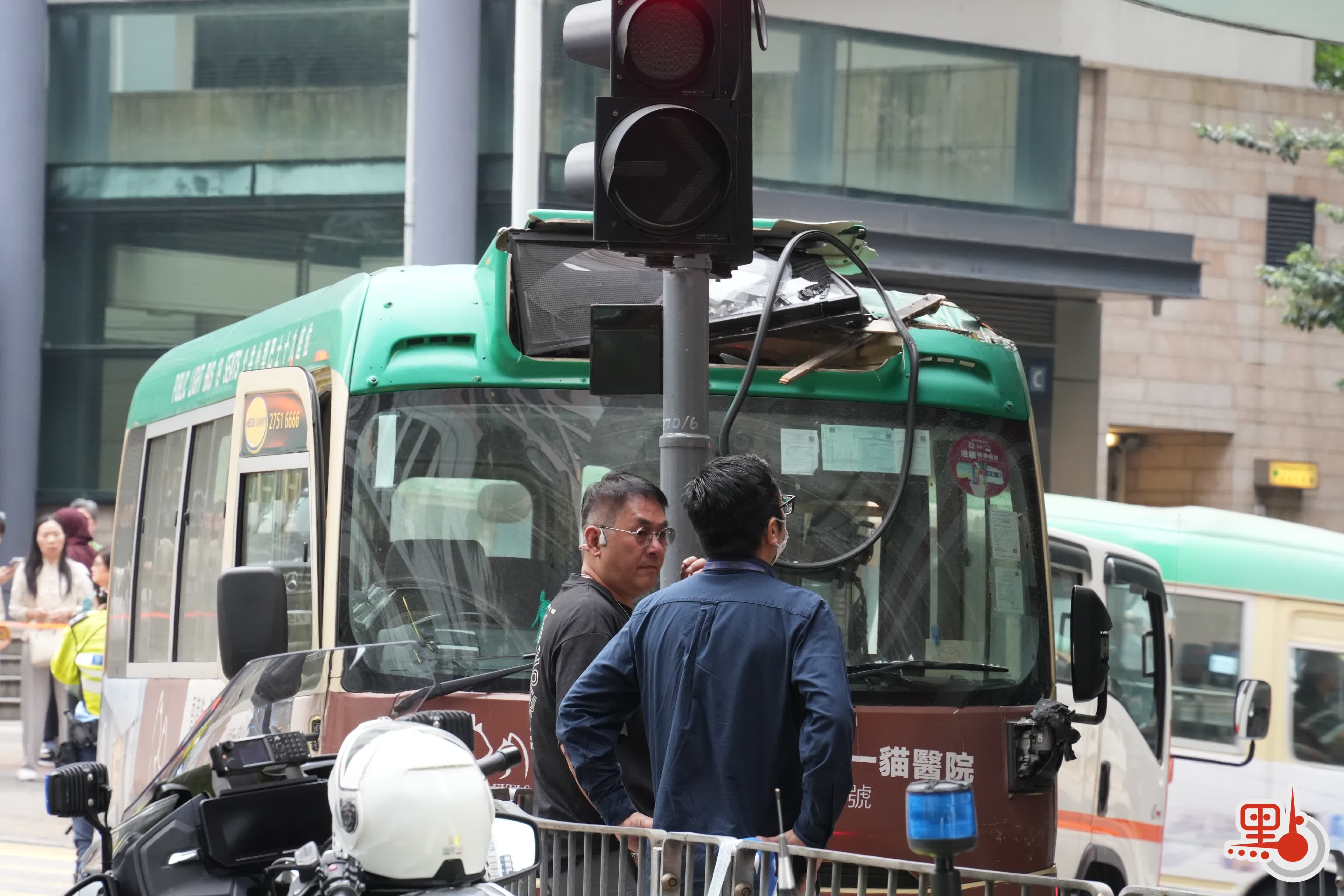 現場所見,小巴車頭毀爛,擋風玻璃破裂。