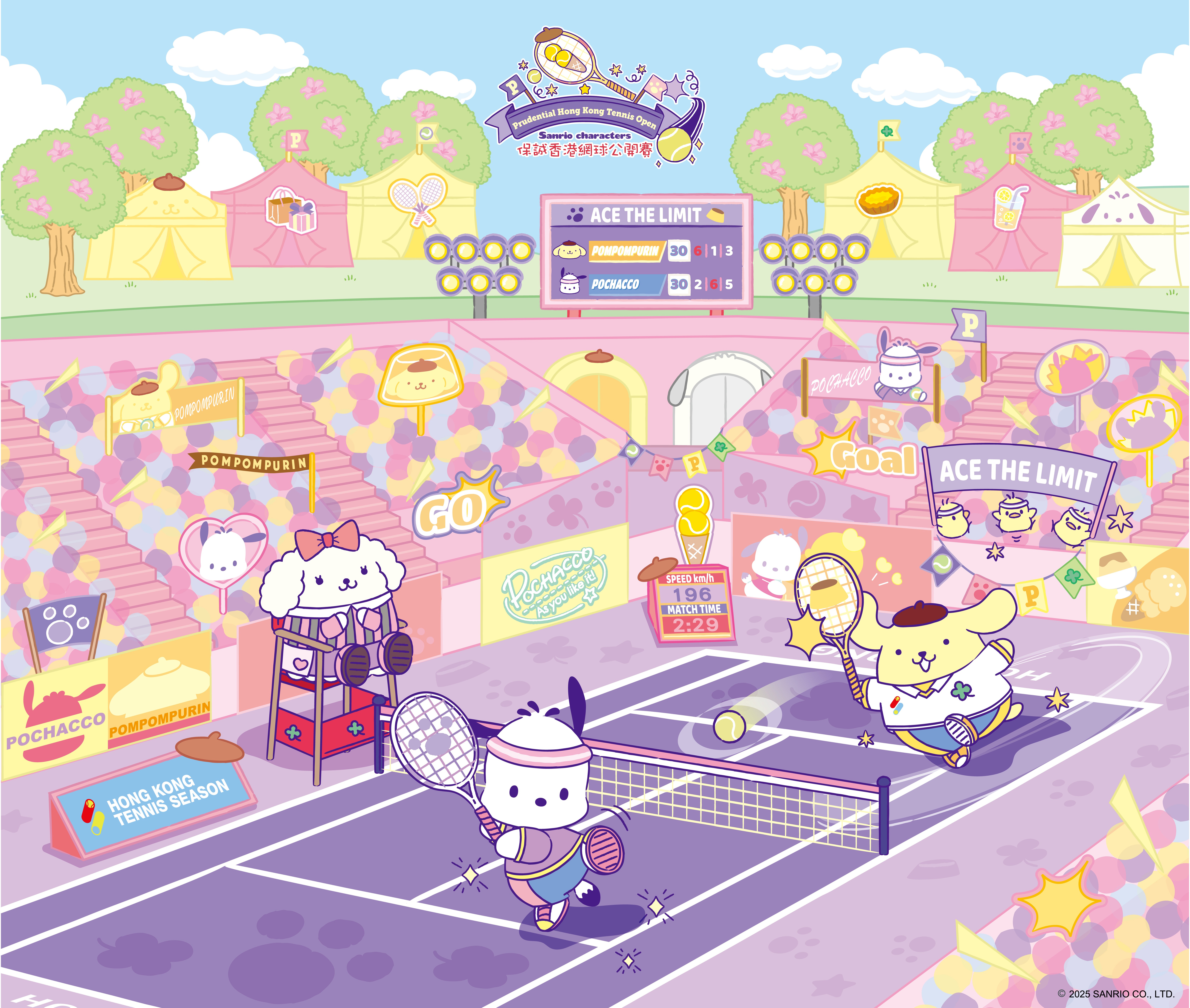 其中,「香港超掂檔」集合多個深受歡迎的香港品牌,從手工小食到創意禮品,展現出香港品牌獨有的巧思與創造力;大會亦與Sanrio Hong Kong聯乘合作,推出多款賽事主題的限量精品,包括Pompompurin、Pochacco、Macaron、Piichans,現場還設有Sanrio主題布置、夢幻打卡位,Sanrio角色更將以可愛網球手造型登場。現場亦設有免費匹克球體驗區,提供標準球場及專業教練指導,入場觀眾更可安坐公眾區,透過巨型LED屏幕直擊精彩賽事!