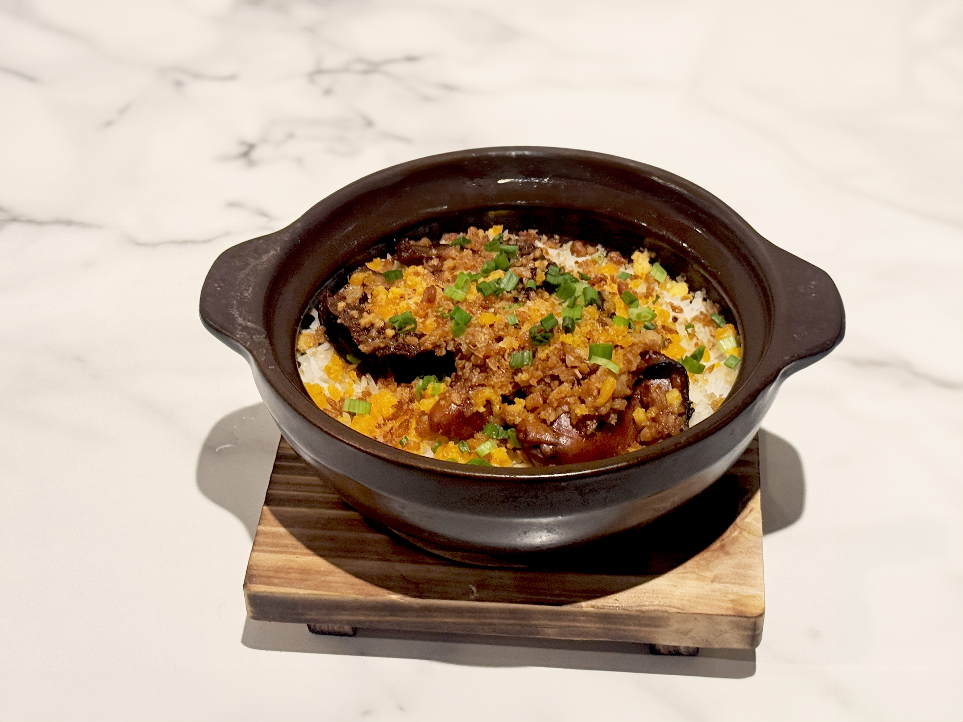 除了煲仔飯,「美麗小廚」的雞宴系列亦是餐廳鎮店靈魂。黎兆鋒最具代表作「大紅袍脆皮雞」,以名茶入饌,皮脆金亮、肉嫩多汁,淡淡茶香貫穿整體;而「黃金薑蓉雞」則以三重薑香取勝——以自家提煉的薑油為基底,巧妙融匯沙薑的辛香、南薑的馥郁、肉薑的醇厚,香氣濃郁而不嗆。