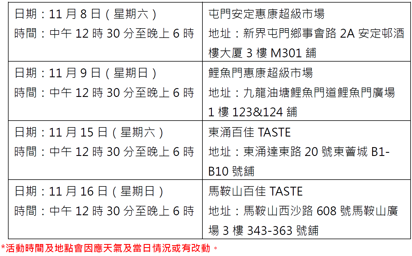 地址:香港銅鑼灣希慎廣場B1層B110