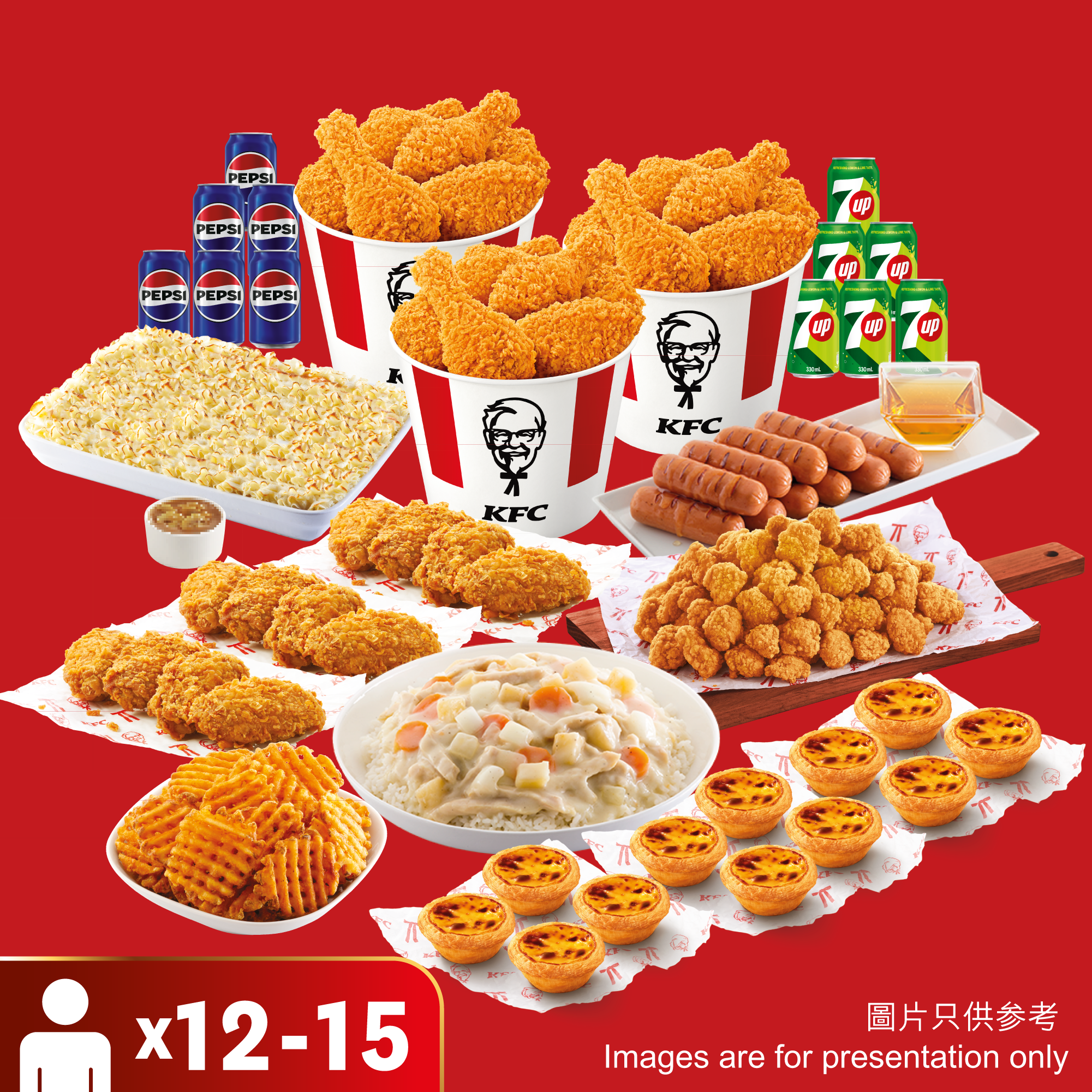凡於推廣期內於網上訂購聖誕派對套餐及於結帳頁輸入優惠碼,即可享滋味派對套餐(8至10人)$758送6件炸雞;歡樂派對套餐(12至15人)$1118送9件炸雞;以及豐盛派對套餐(16至20人)$1488送12件炸雞。