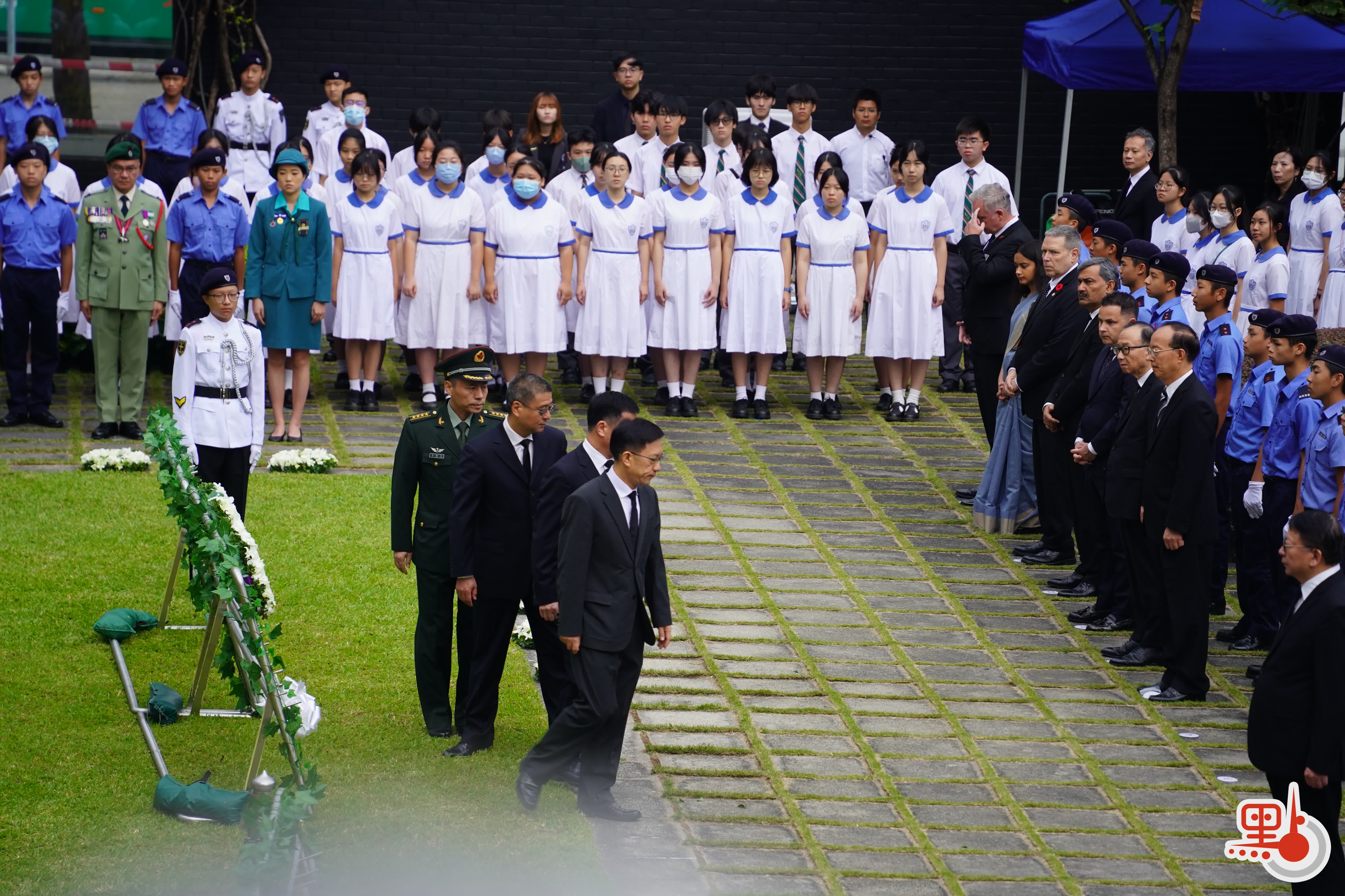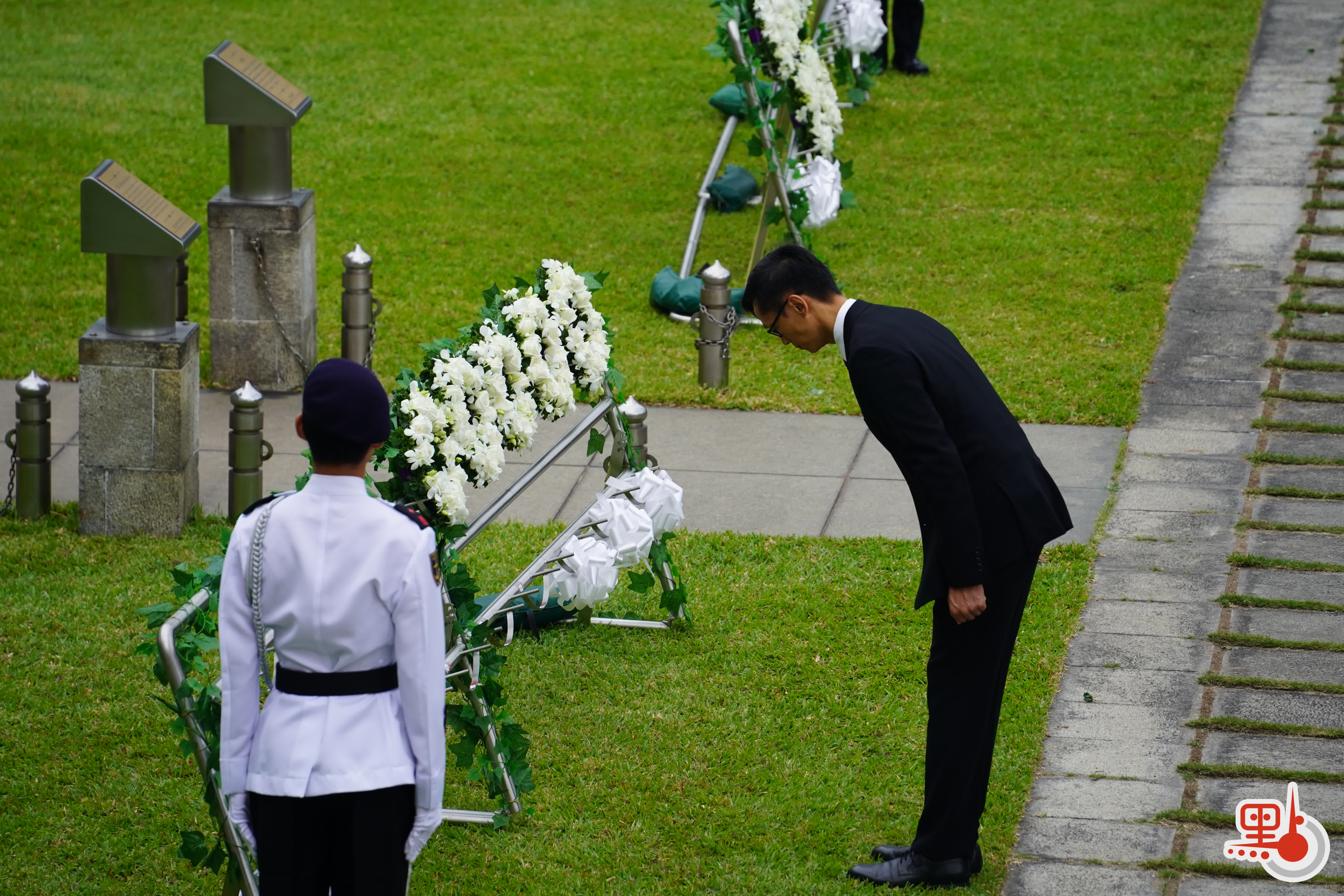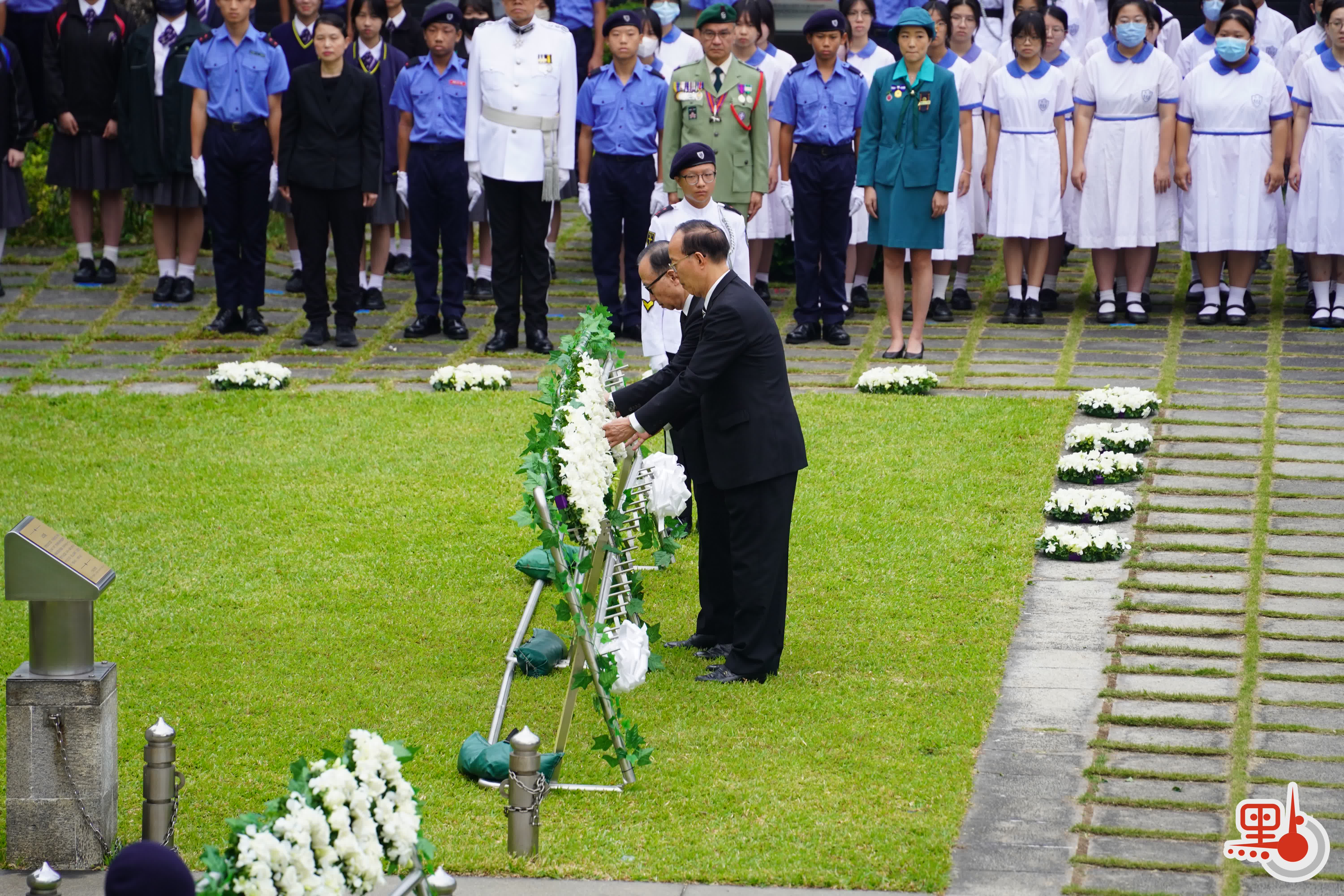 【點新聞報道】今日(29日)是重陽節,特區政府於香港大會堂紀念花園舉行一年一度的官方紀念儀式,悼念於1941至1945年間為保衛香港而捐軀的人士。署理行政長官陳國基出席儀式並致獻花圈。前行政長官曾蔭權,多名司局長、及行會召集人葉劉淑儀等,都有出席。