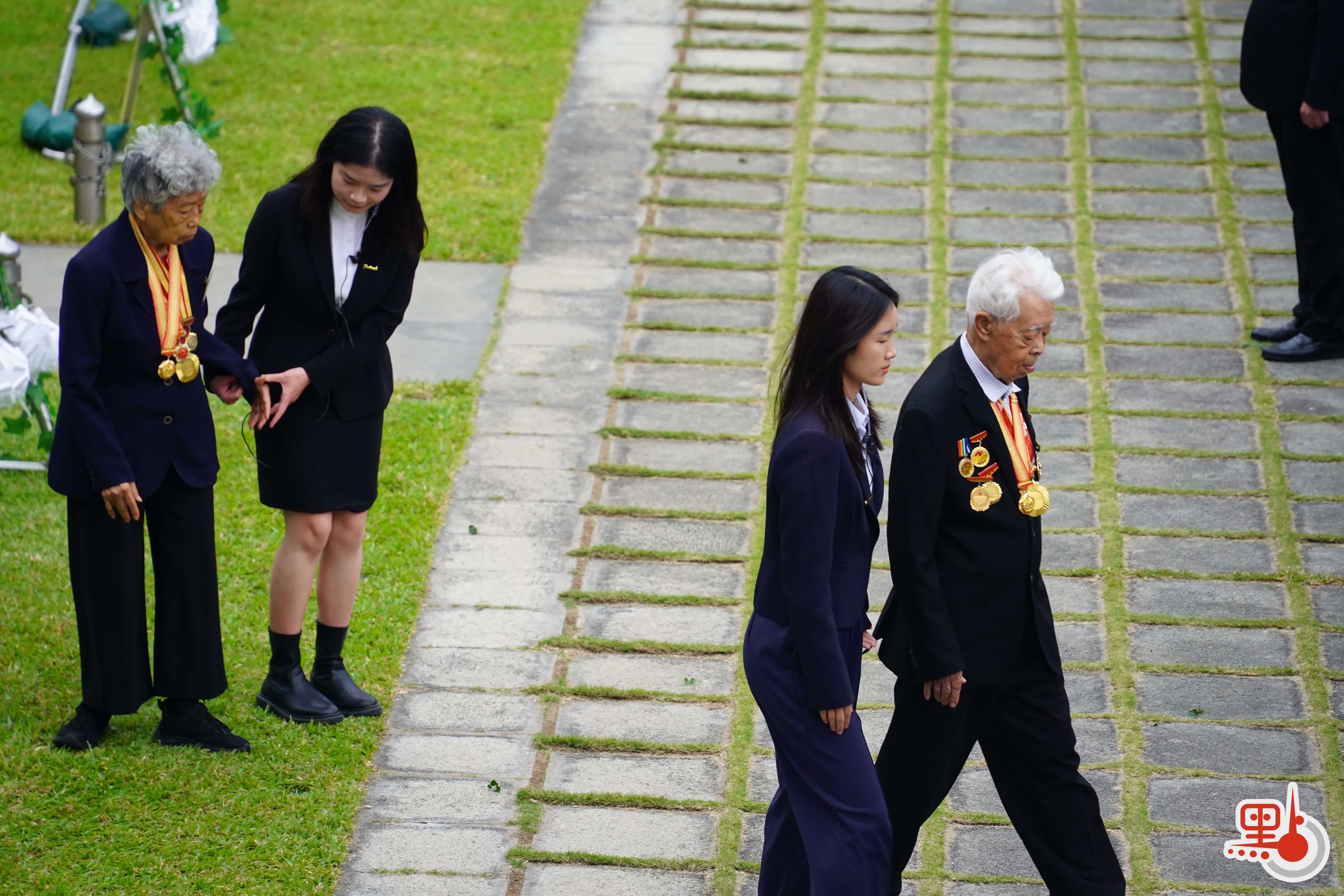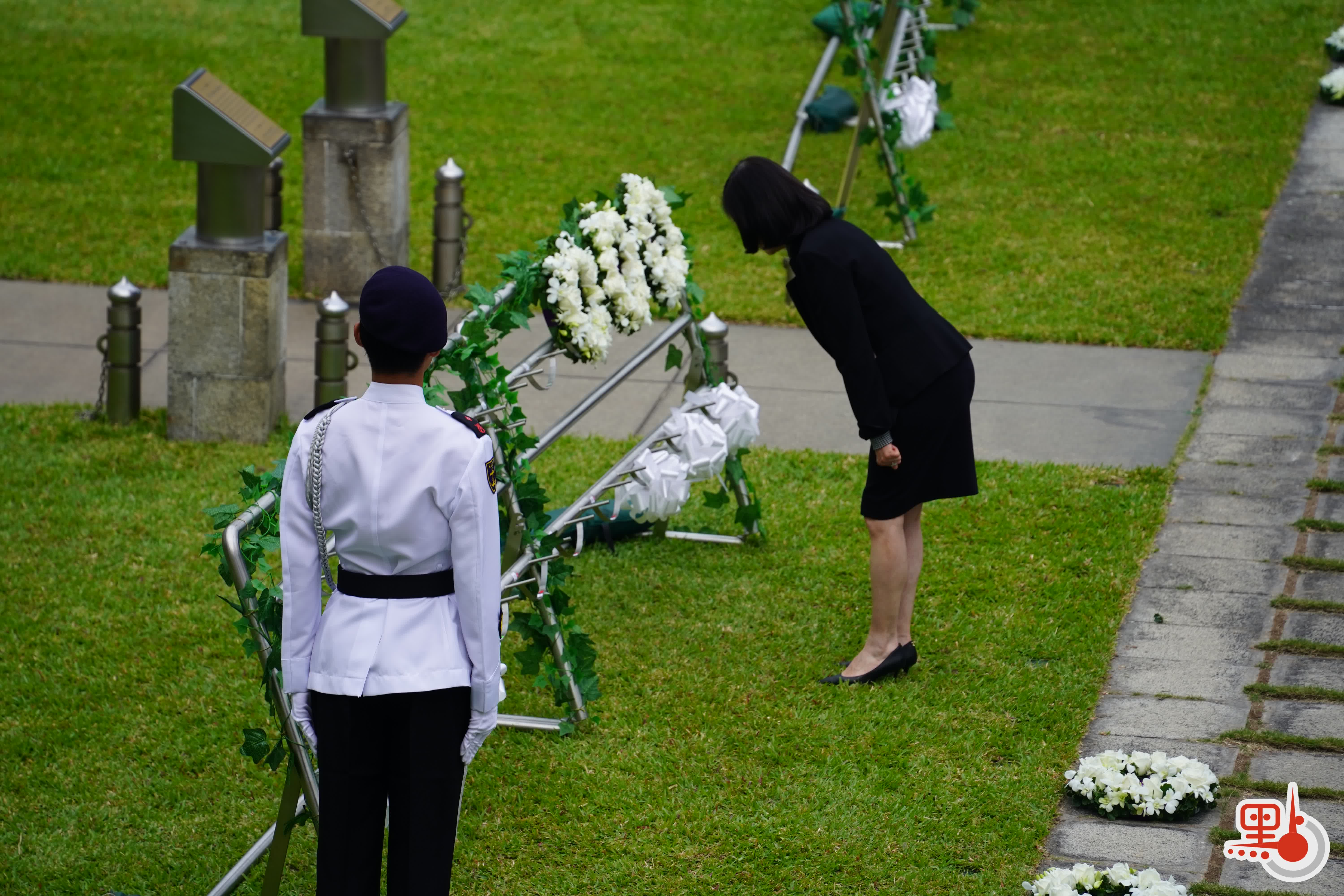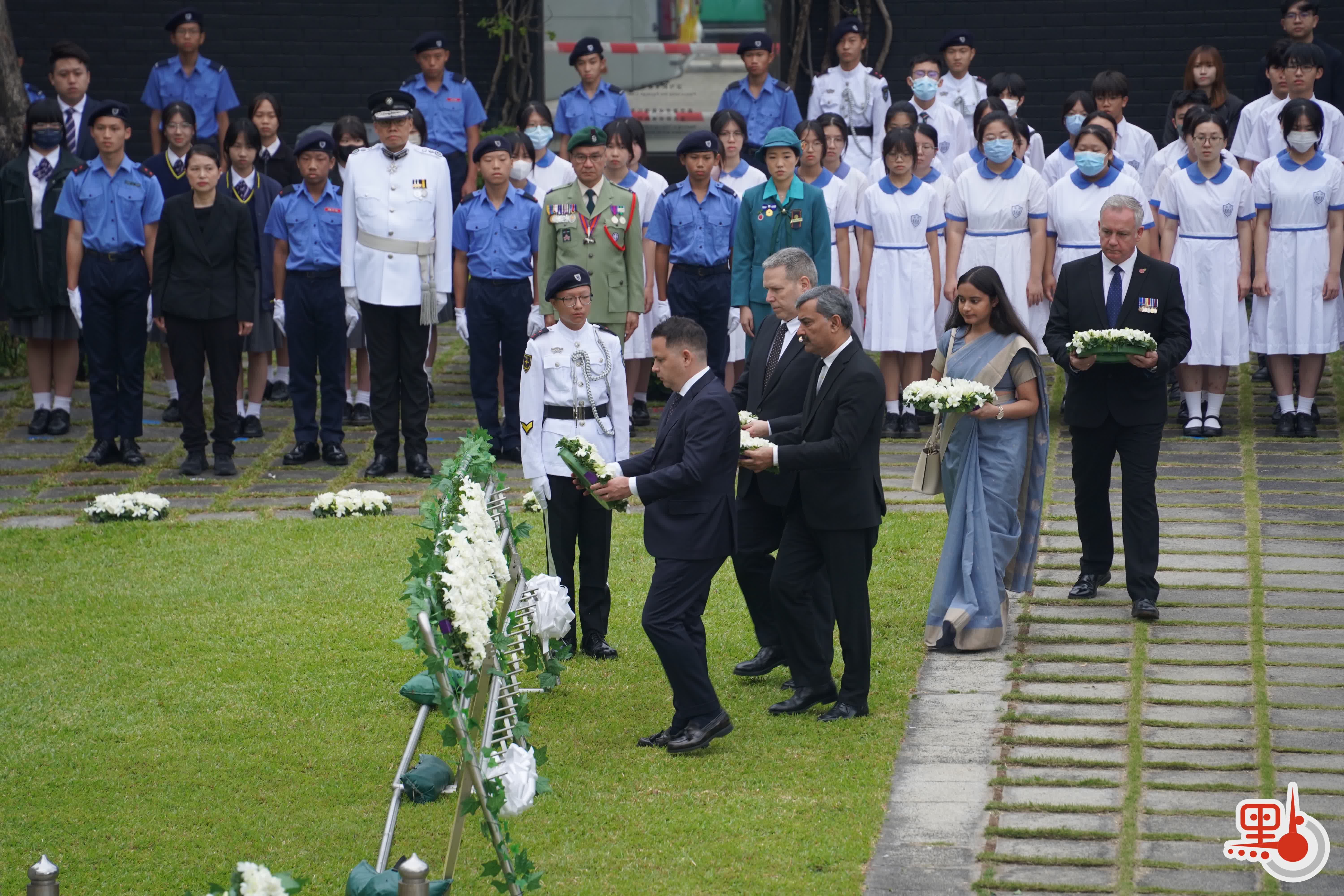 【點新聞報道】今日(29日)是重陽節,特區政府於香港大會堂紀念花園舉行一年一度的官方紀念儀式,悼念於1941至1945年間為保衛香港而捐軀的人士。署理行政長官陳國基出席儀式並致獻花圈。前行政長官曾蔭權,多名司局長、及行會召集人葉劉淑儀等,都有出席。