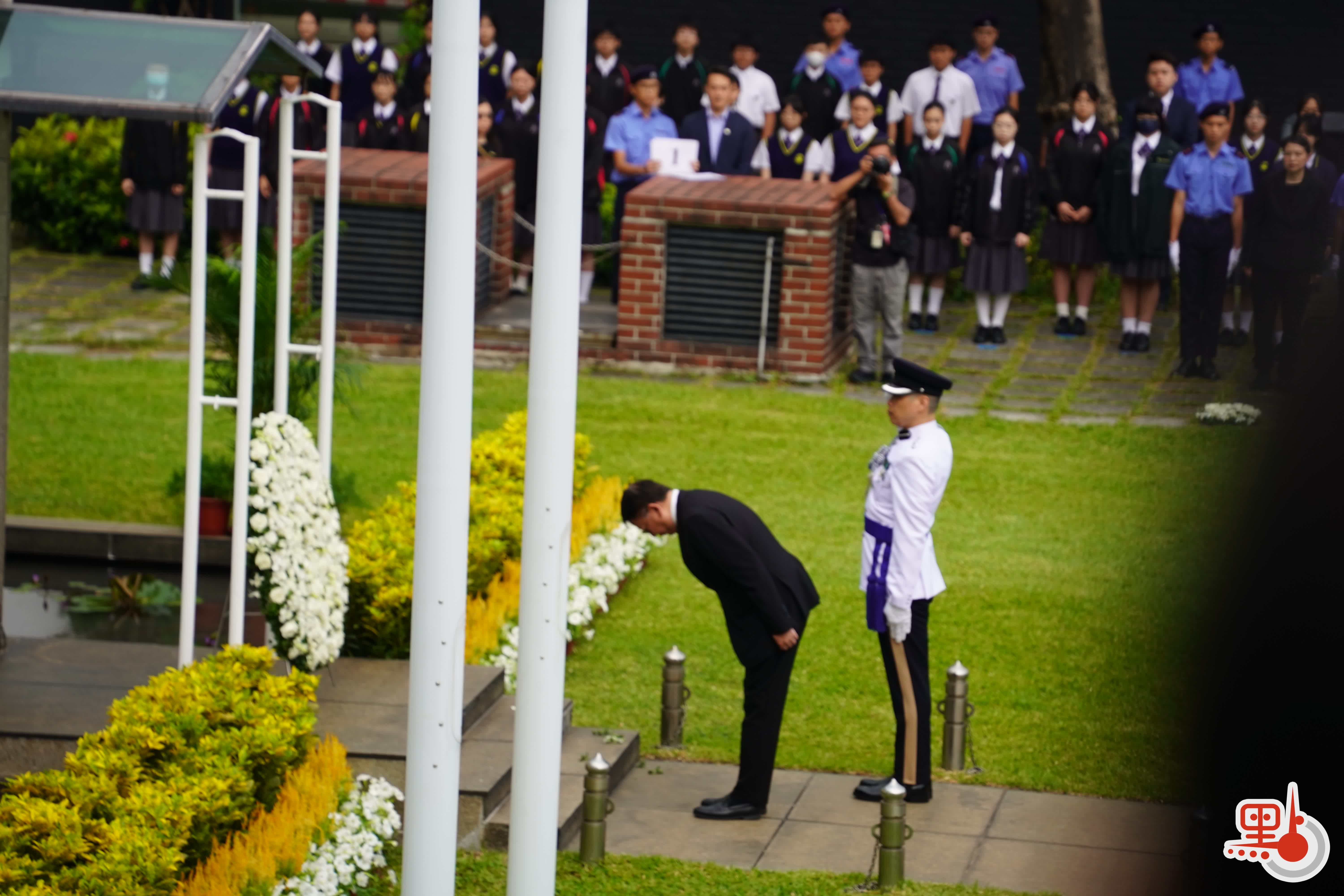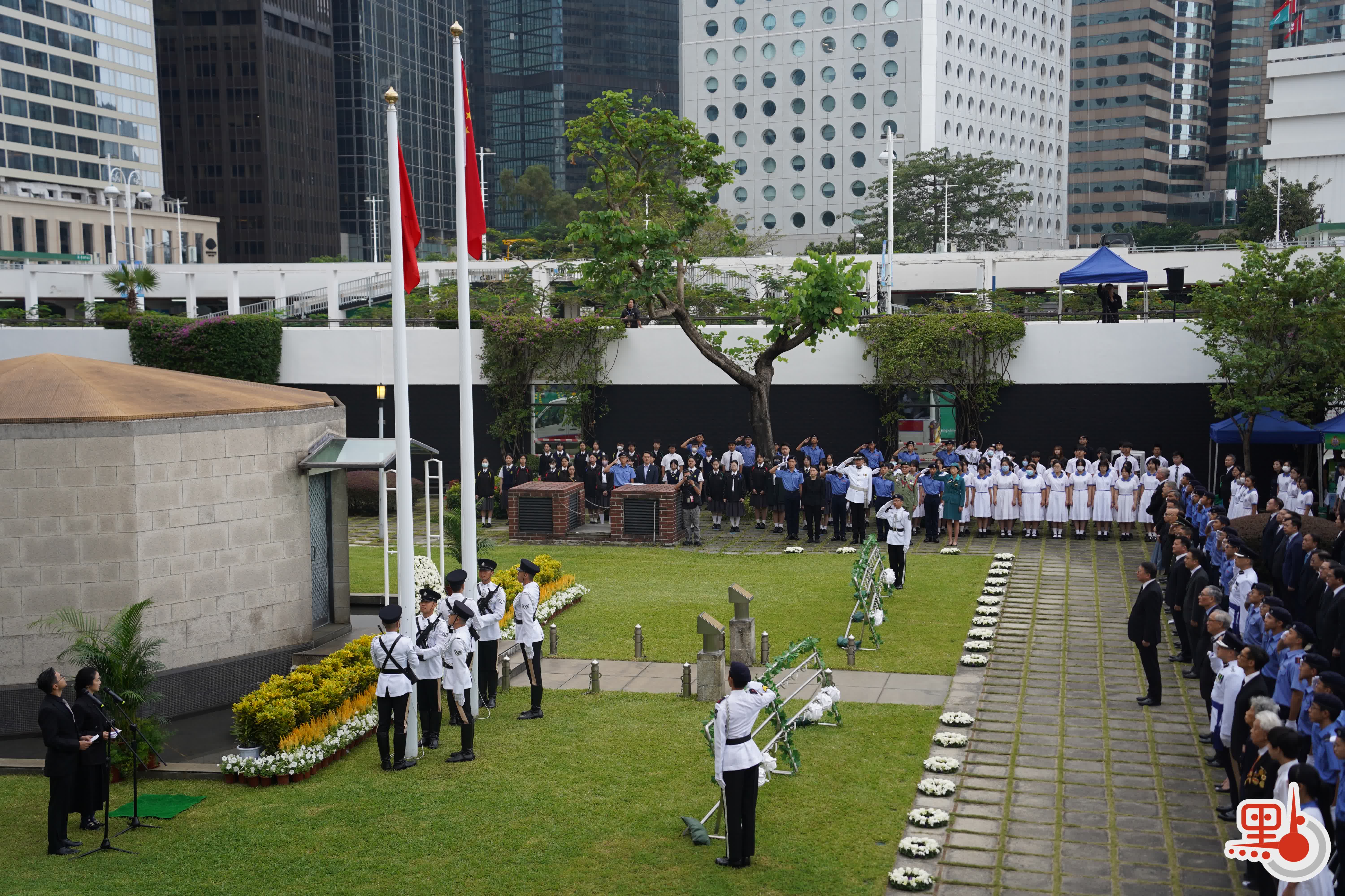 儀式早上八時開始,在奏唱國歌和升國旗區旗後,全場默哀兩分鐘。
