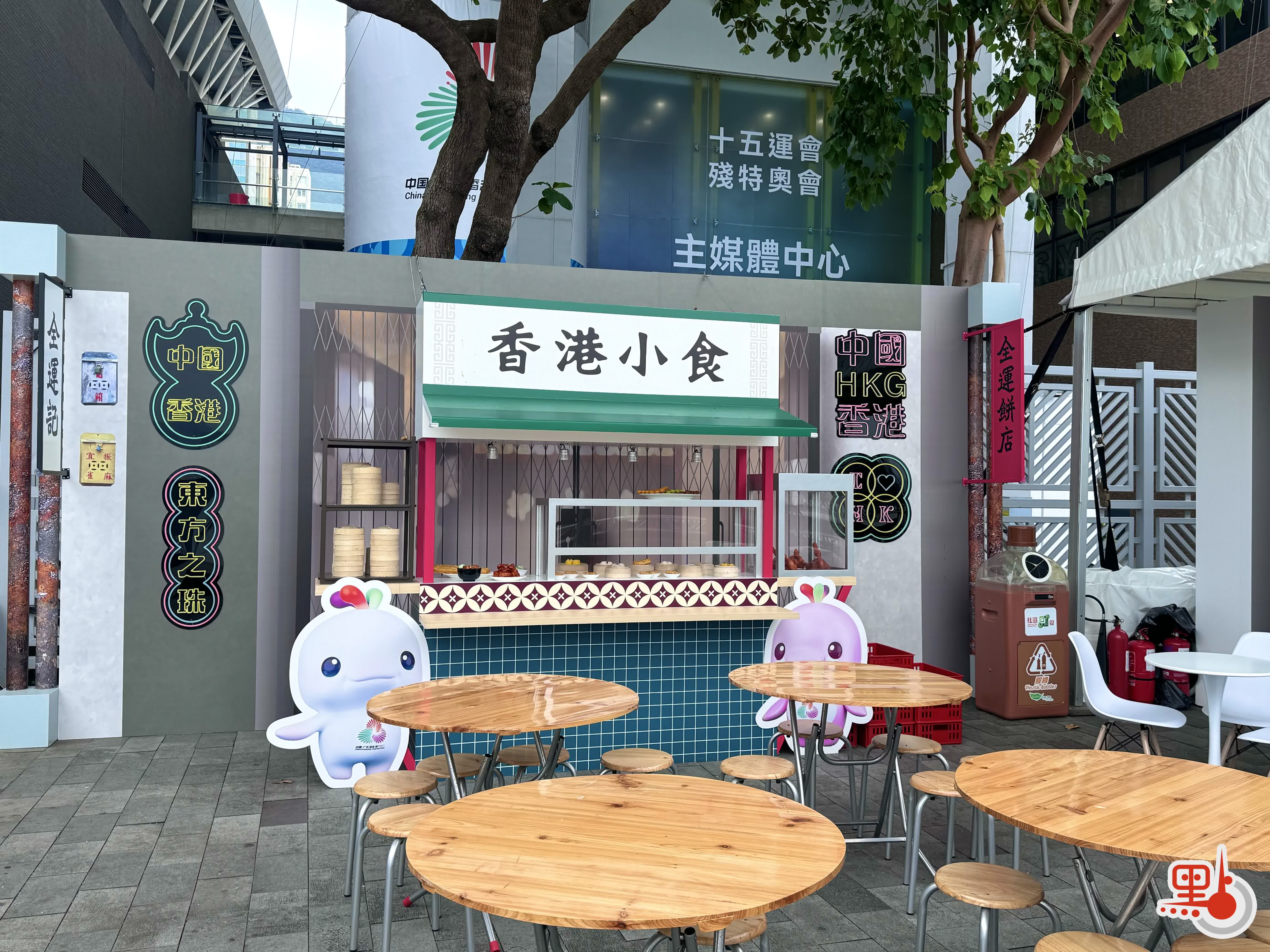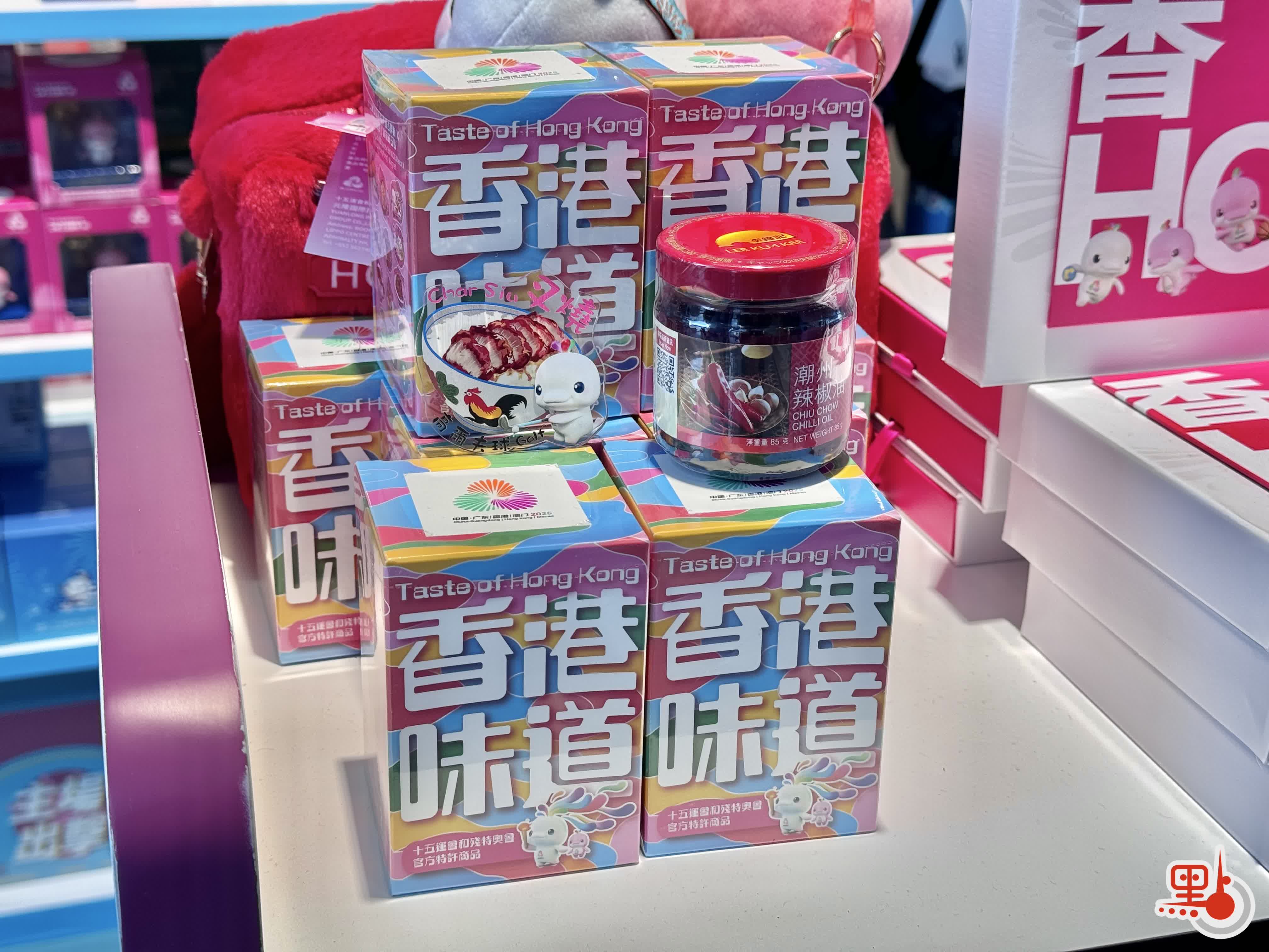 入門後左手邊是官方授權的紀念品零售店,空間不大,而周邊種類豐富。除了與賽事相關的徽章和鑰匙扣、以吉祥物為主題的玩偶及收納包之外,還有「主場出撃」毛絨掛件盲盒、「香港味道」醬料禮盒等香港賽區限定款。當中,「媒體工作者」徽章讓我有所觸動,似乎更加真切感受到自己也將成為這場重大賽事的見證者和記錄者。
