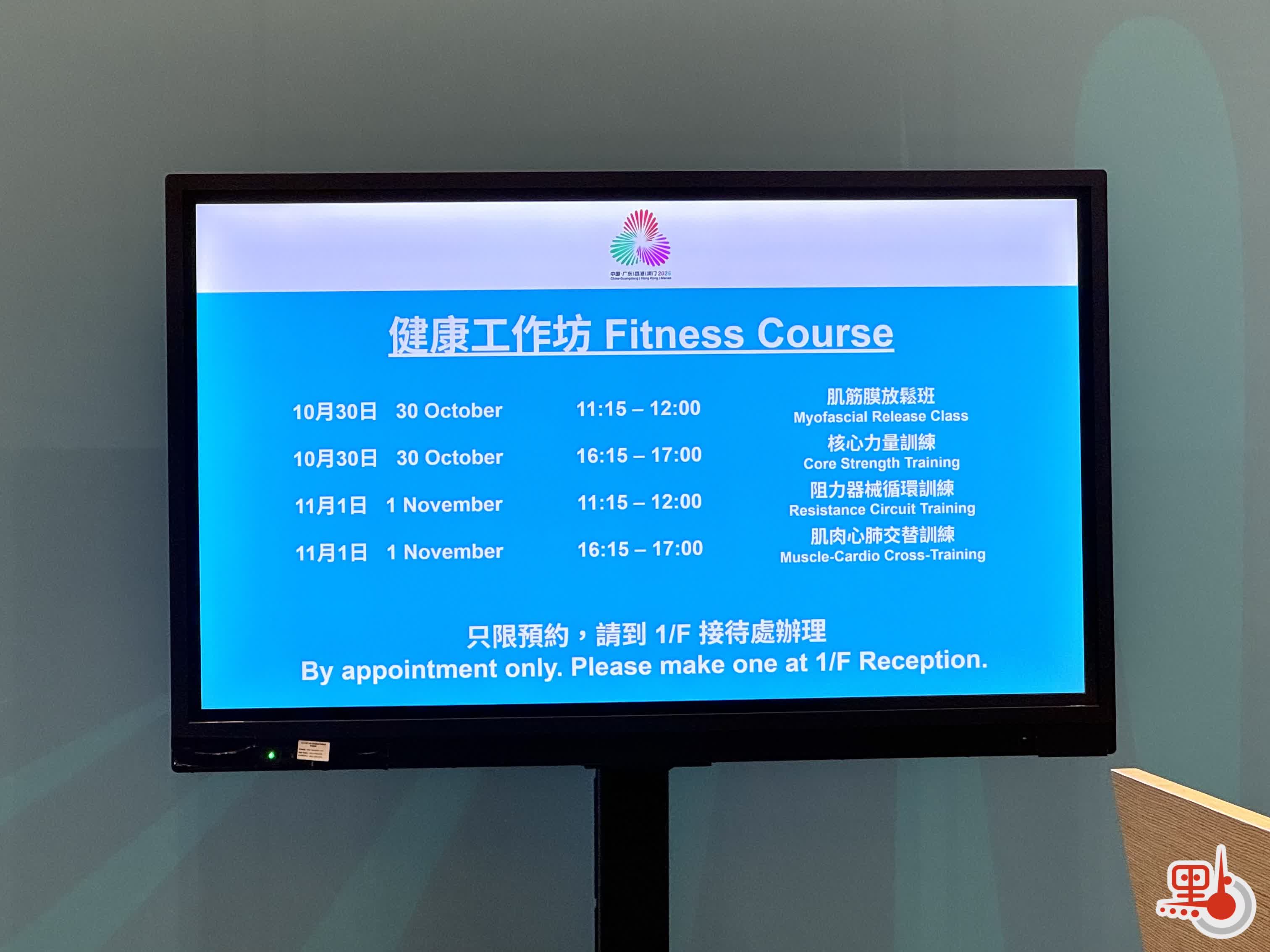 令我意外的是,中心竟然還配備了健身室和開辦健康工作坊。懷着好奇一探究竟,室內健身設備一應俱全,亦有兩間物理治療室將開辦健康工作坊,讓記者在忙碌之時亦能保持運動。如此暖心的設置,正是對「全民運動」理念的絕佳詮釋。