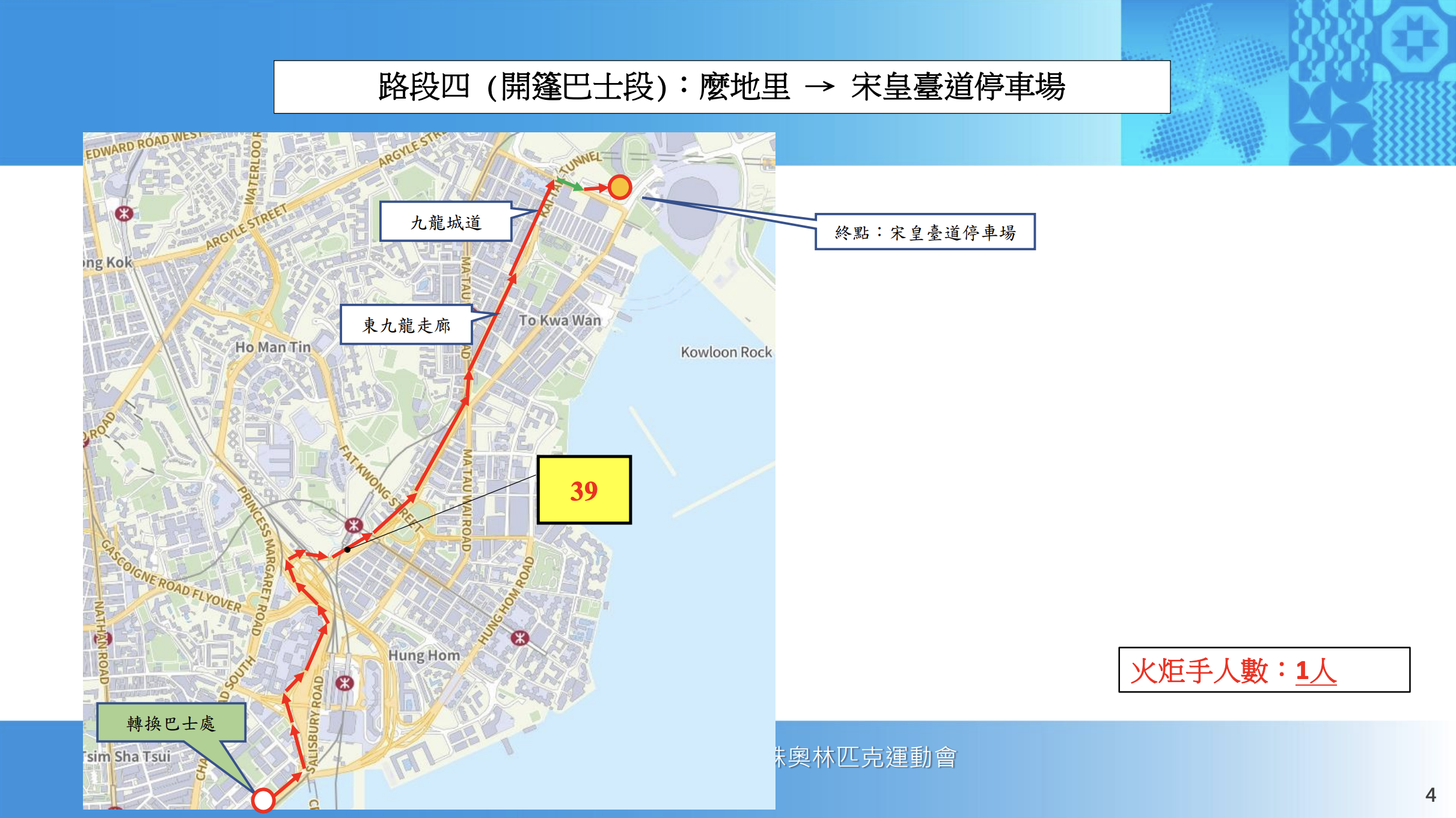 第四段火炬手乘坐開篷巴士至香港啟德體育園巴士站。