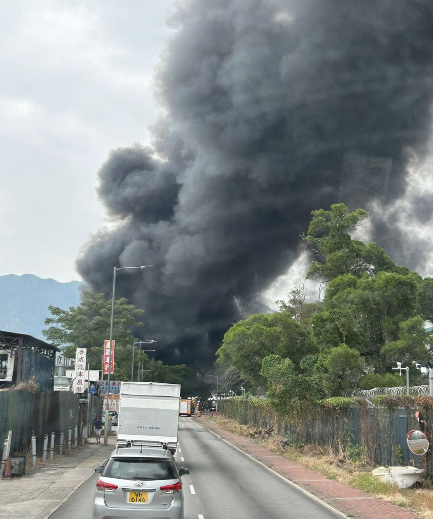 【點新聞報道】今日(11月1日)下午3時許,元朗發生火警。石崗錦田公路250號一間車房突然起火,濃煙席捲半空,消防派出兩喉兩煙帽隊到場撲救,3人自行疏散,暫時未有人傷,初步懷疑有汽車廢置電池起火。