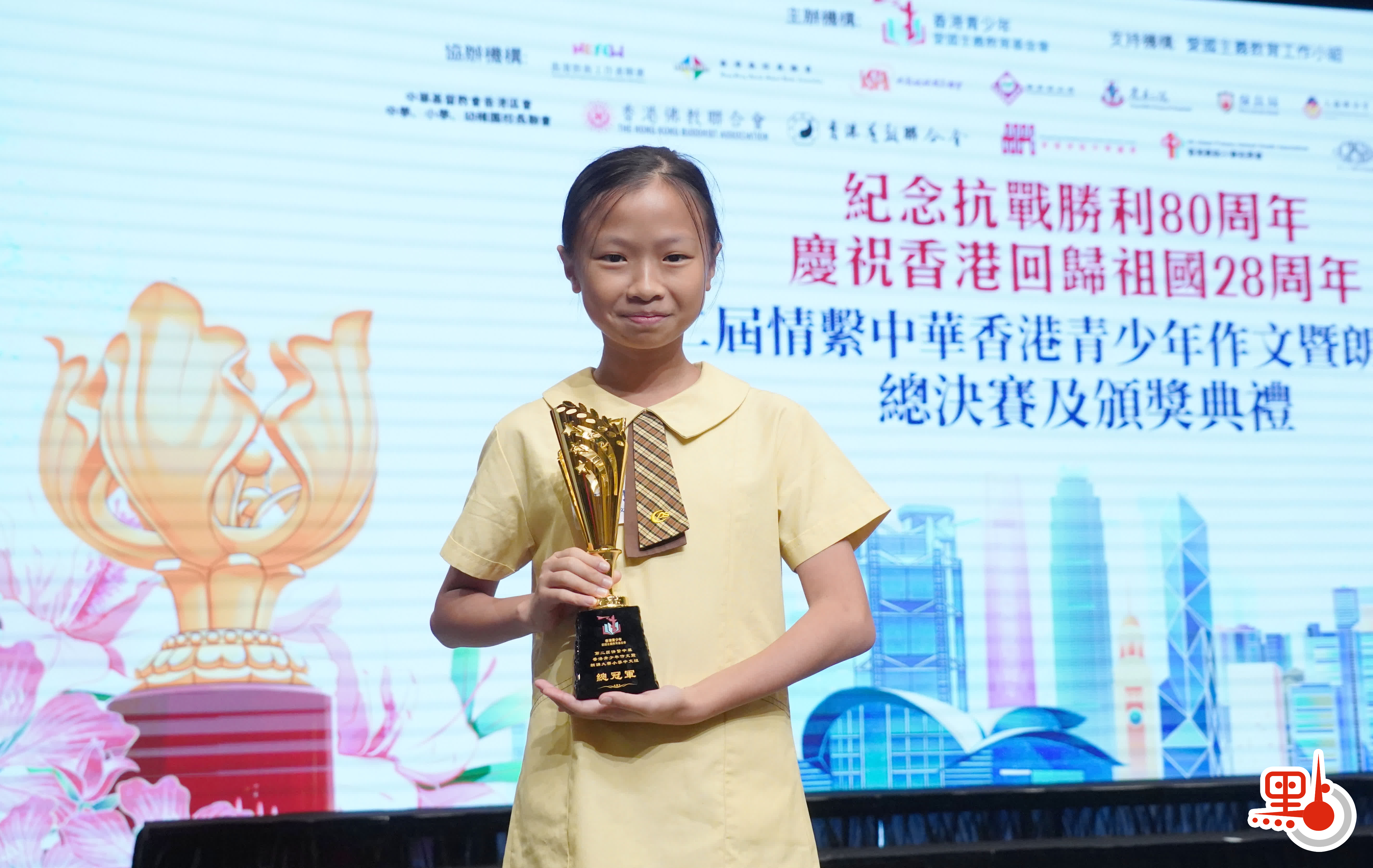 嘉諾撒小學(新蒲崗)的張梓琳獲小學中文組總冠軍。她向記者表示,取材是從自身經歷和旅遊見聞出發,將所見所感融入作文中。她在是次參賽搜集資料,令她對香港在離開祖國母親期間經歷的種種有更深入了解,感慨香港重回祖國懷抱時,那種「失而復得」的感動是極其特別而珍貴的經歷。