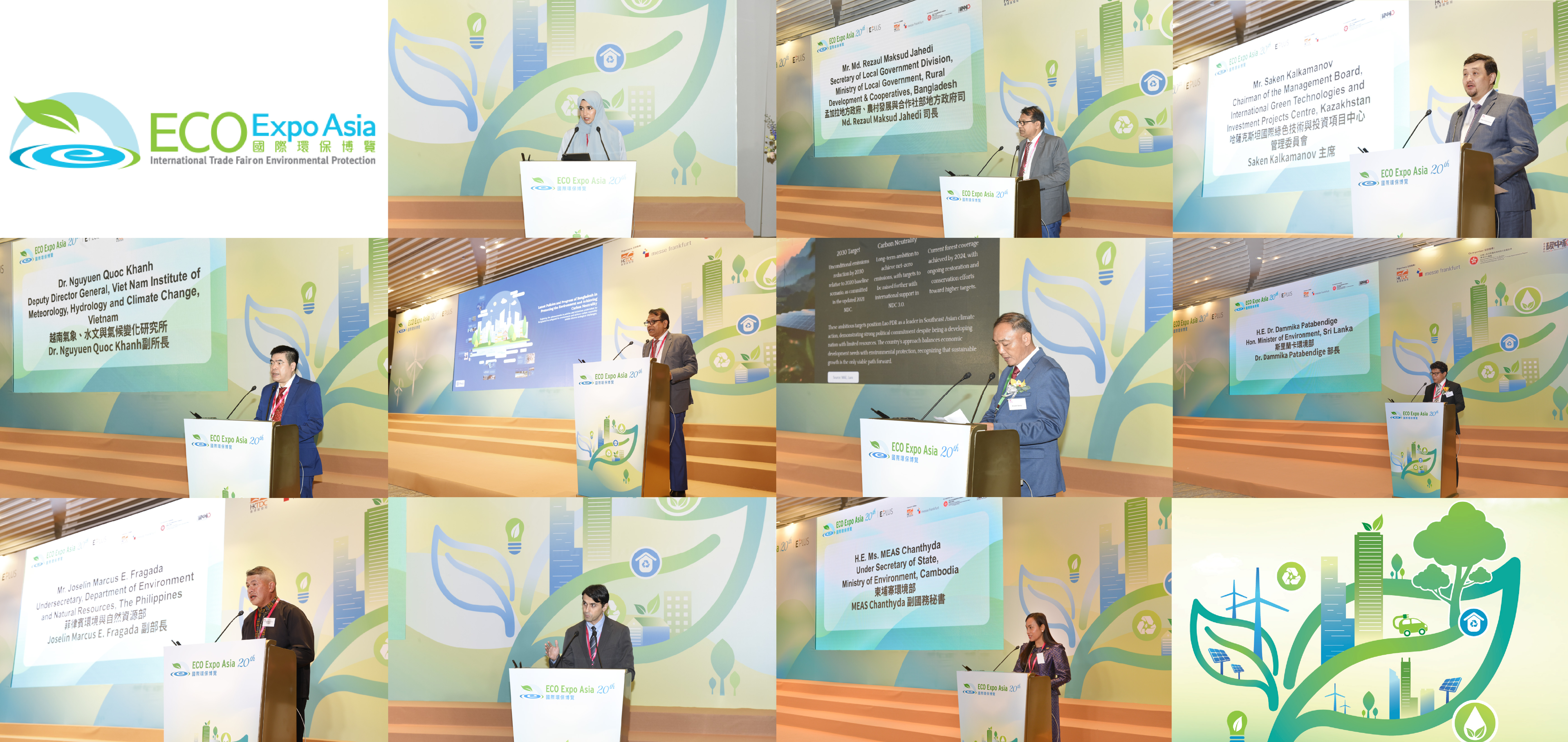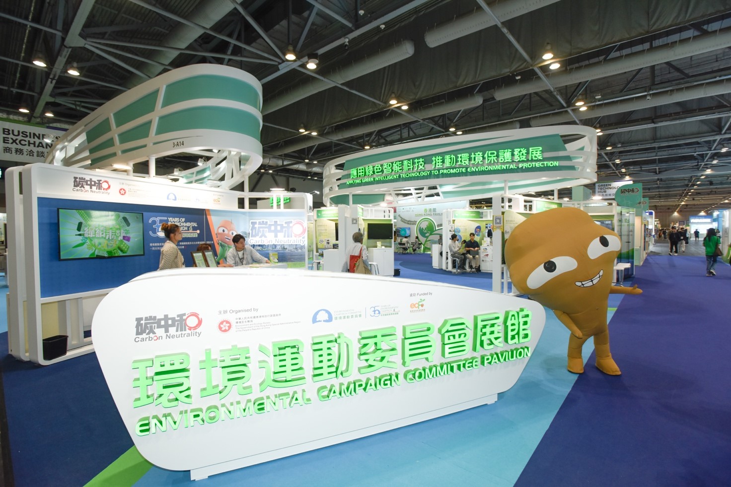 除了各地政府之間的交流合作,來自13個國家及地區、逾340家參展商也在博覽會設立展位,積極尋求買家與合作機會。環境及生態局和多個政府部門合力設立政府展館,分為「智慧環境科技」、「節能與環保建築」、「減廢及回收」和「新能源運輸」四個展區,分享實踐經驗,展示政府在減碳方面的努力和成果。此外,博覽會今年新設了環境運動委員會專屬展館,支持初創公司集中展示環保科研和人工智能應用項目的成果。
