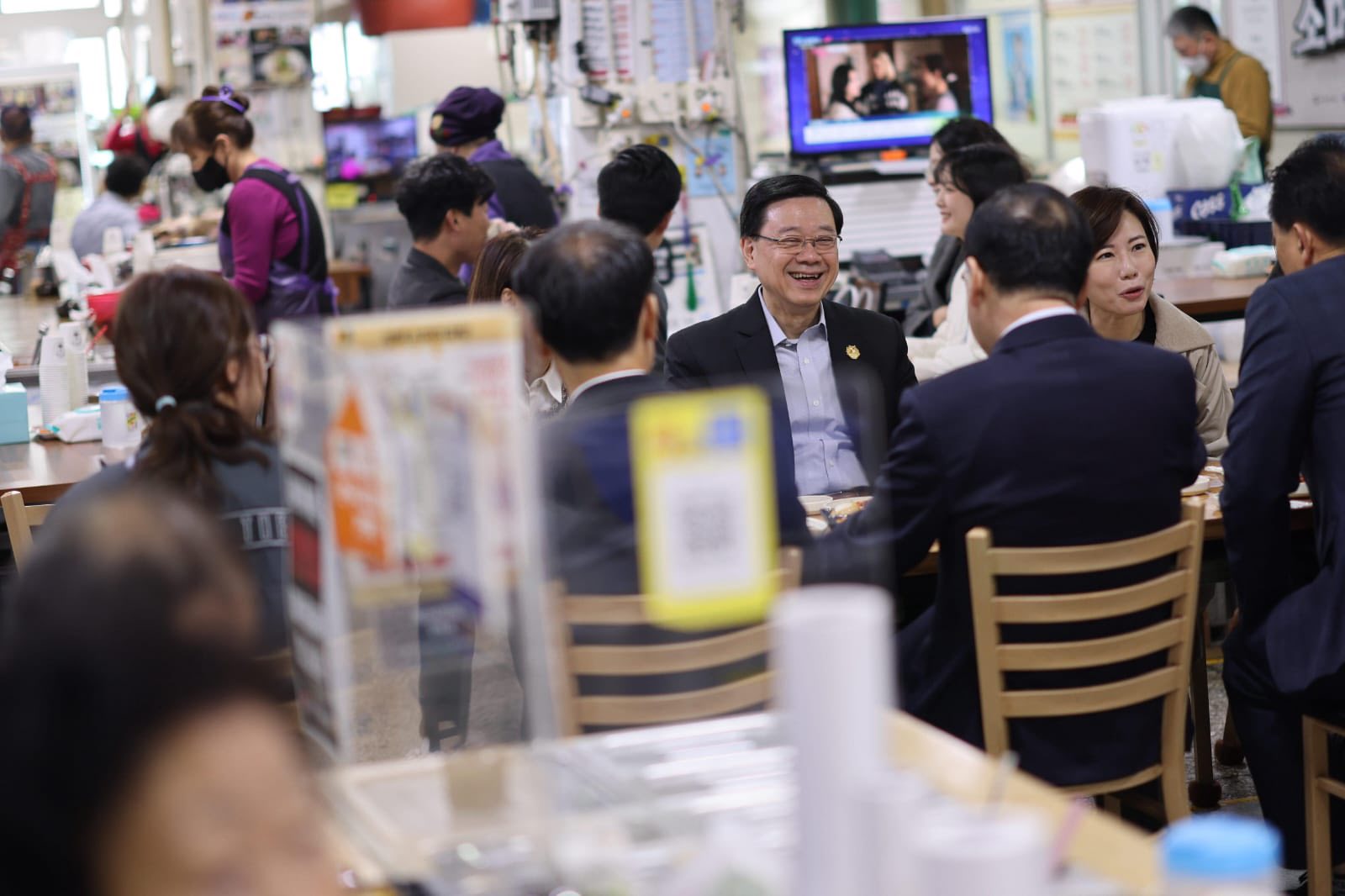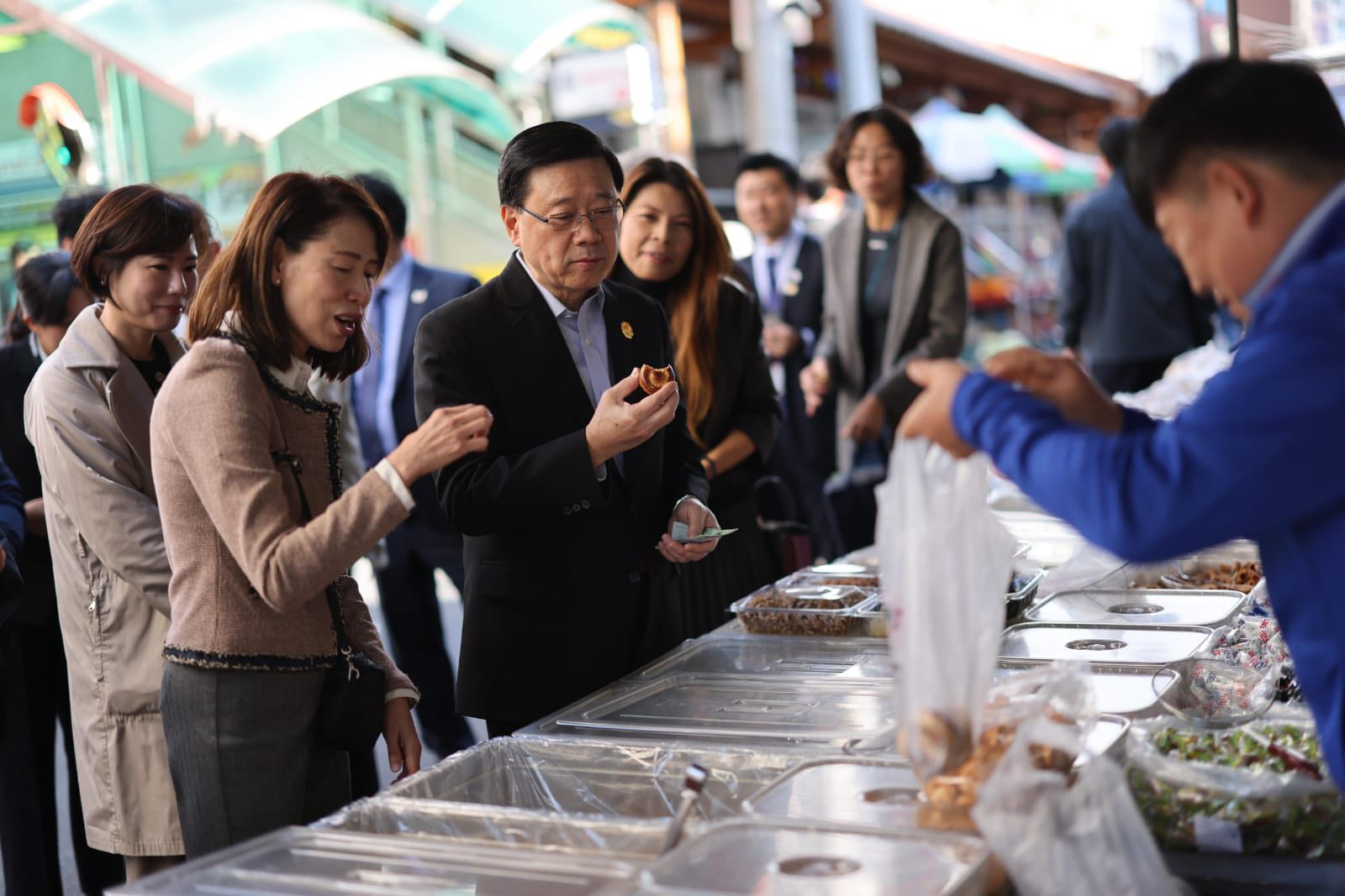 【點新聞報道】行政長官李家超日前在韓國出席在慶州舉行的亞太經合組織(APEC)領導人非正式會議及相關活動。經過連日APEC會議後,李家超今早(11月2日)和團隊成員前往慶州中央市場,感受當地市井煙火氣息,並與慶州市市長朱洛榮一起吃早餐,恭賀他成功舉辦了一場出色的峰會。