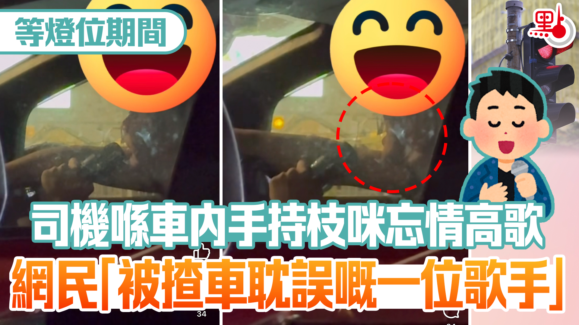 等燈位期間 司機喺車內手持枝咪忘情高歌 網民「被揸車耽誤嘅一位歌手」