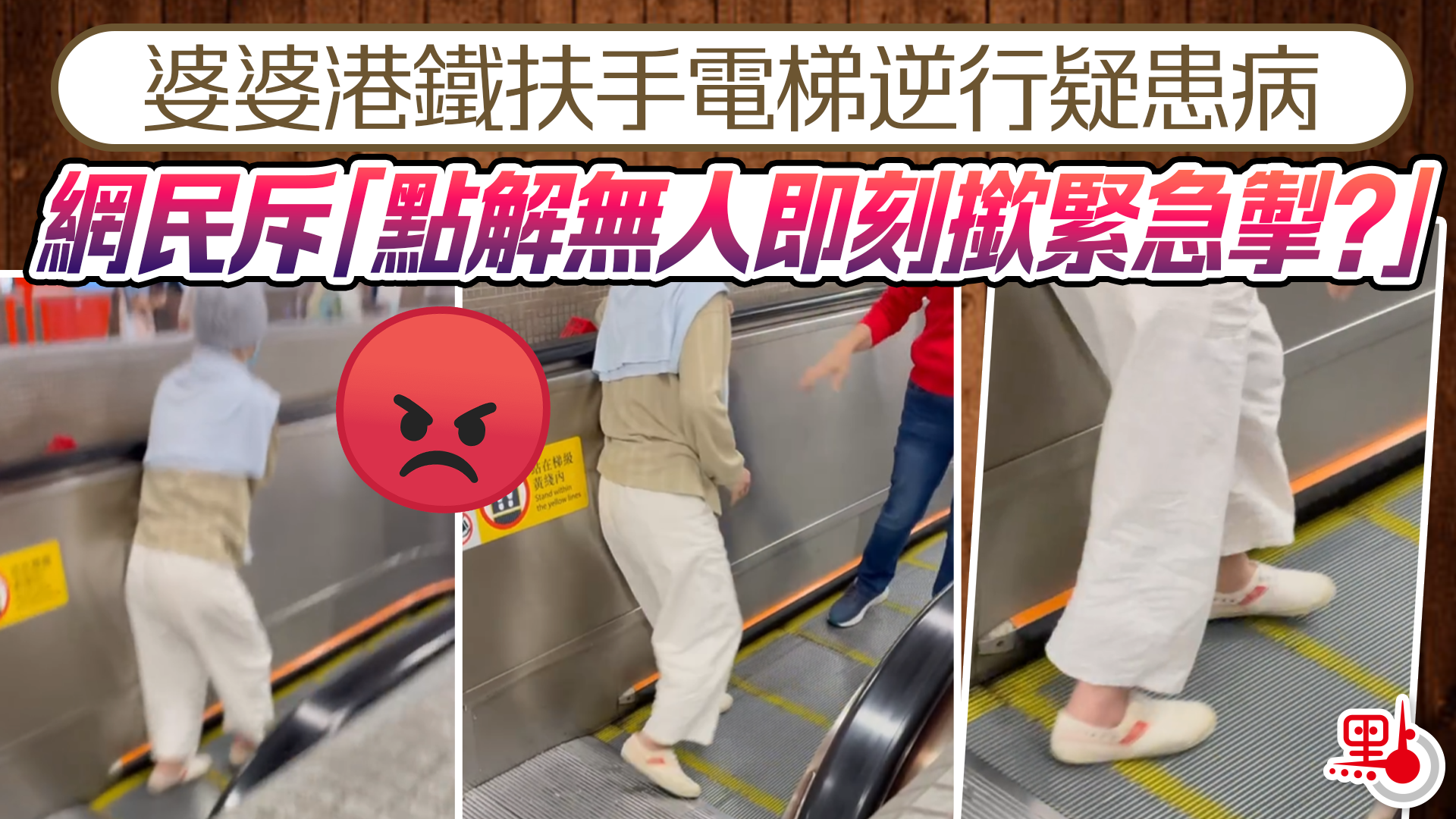 婆婆港鐵扶手電梯逆行疑患病 網民斥「點解無人即刻撳緊急掣?」