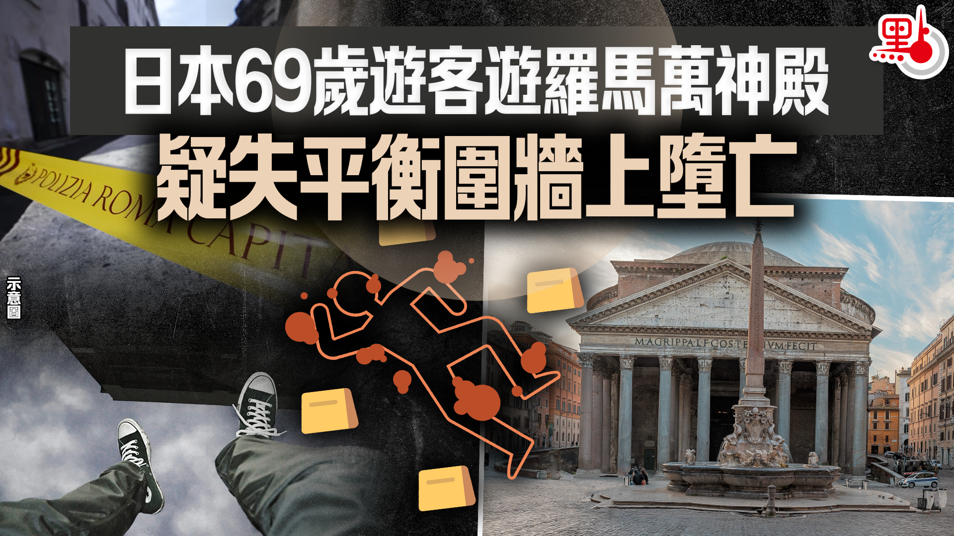 【點新聞報道】上月24日,一名日本69歲的男遊客在遊覽意大利羅馬著名景點萬神殿時,疑似身體失去平衡,從神殿外的圍牆上墮下身亡。