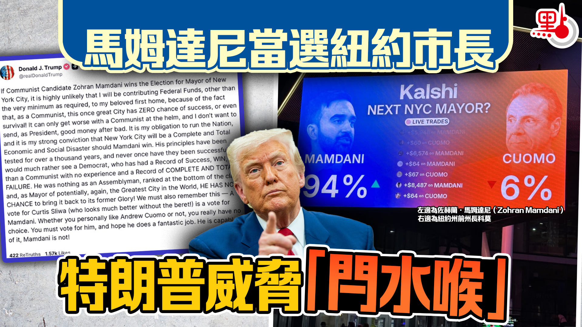 馬姆達尼當選紐約市長 特朗普威脅「閂水喉」