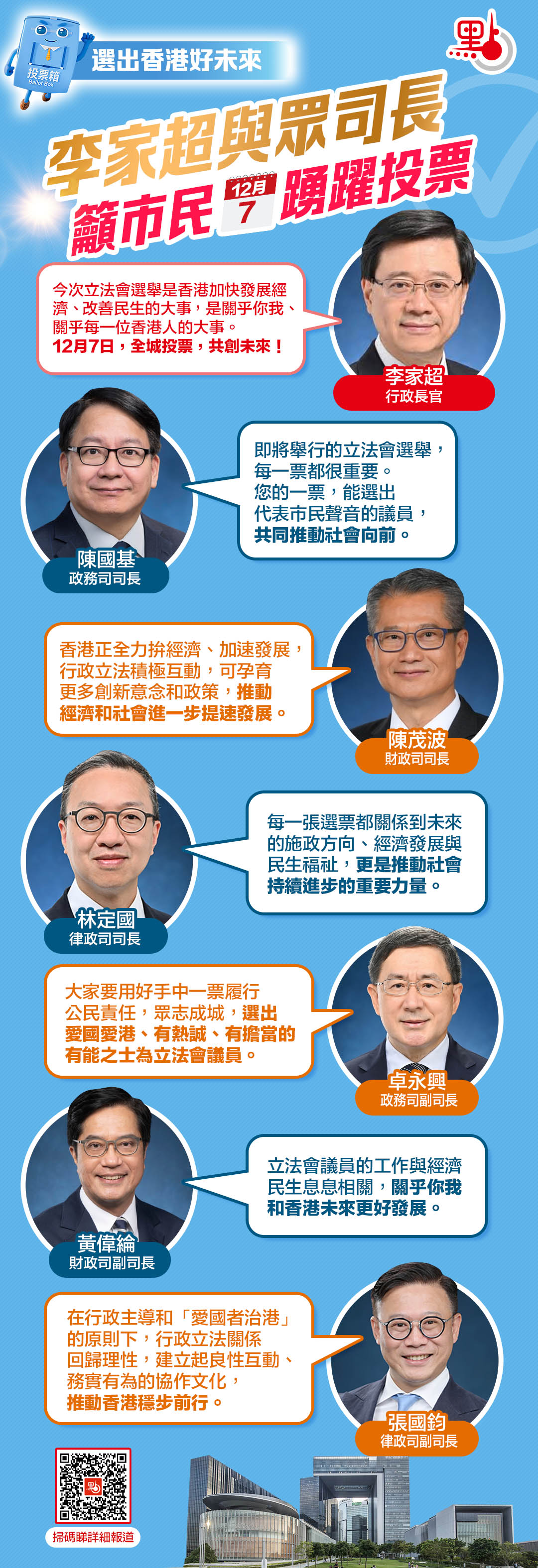 (有片)立法會換屆選舉12·7舉行 李家超與眾司局長籲市民踴躍投票