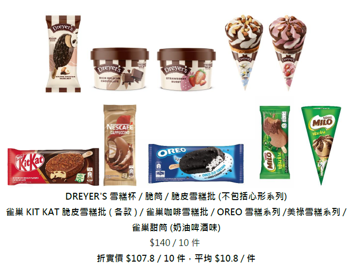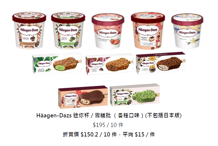 今期77折優惠包括5天限定着數之選的Häagen-Dazs雪糕批/迷你杯(不包括日本版)、DREYER'S雪糕批/雪糕杯/脆筒(不包括心形系列)等,為你送上折上折優惠!假日想約朋友開派對,當然亦不少得Häagen-Dazs雪糕杯(各種口味)等。