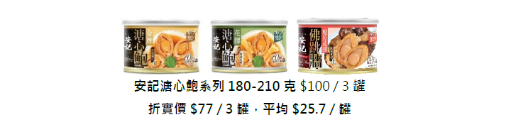 今期有送禮自用皆宜的安記溏心鮑魚及海味、各款7-SELECT雞髀、即食雞胸、三文魚等。