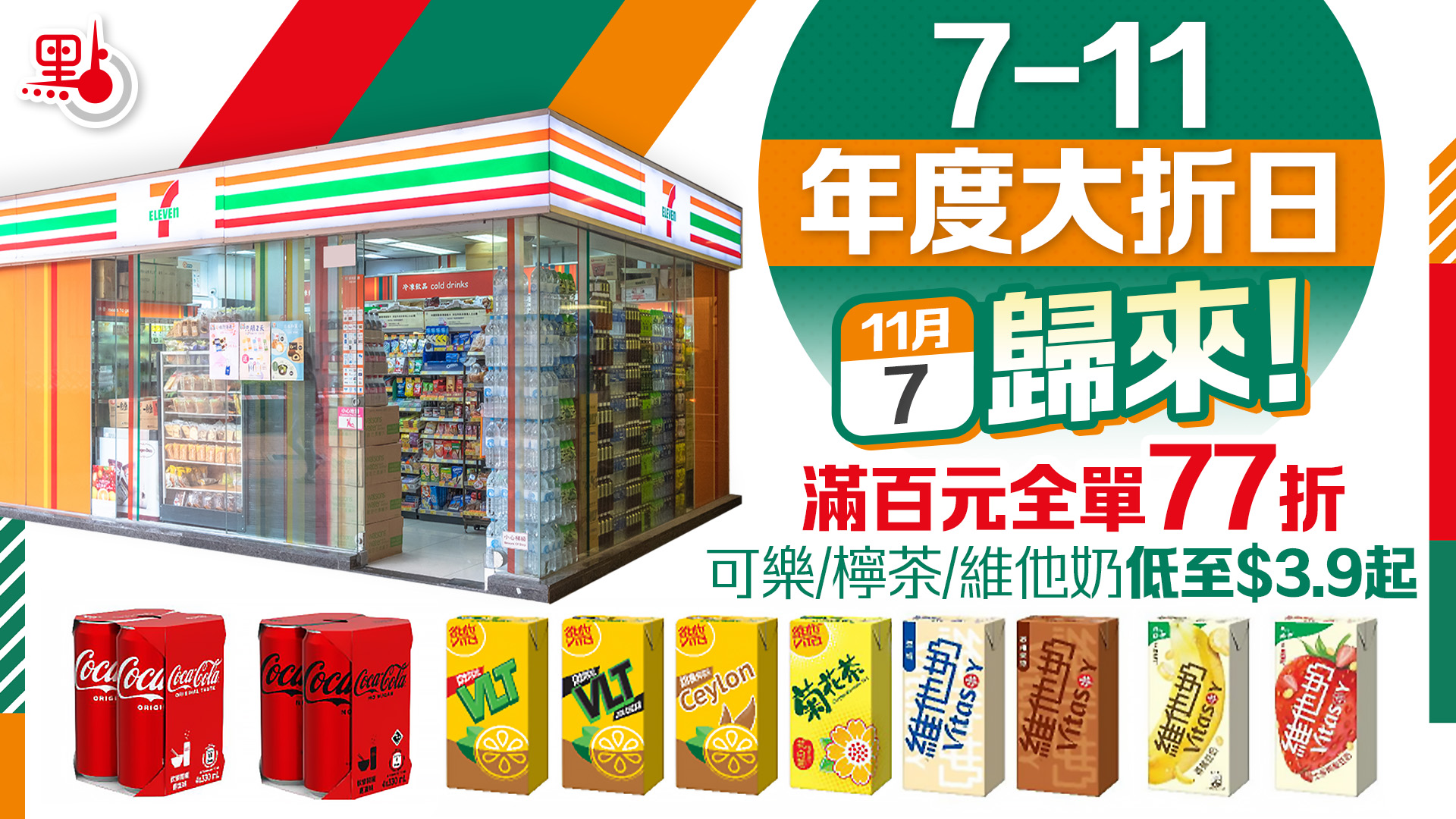 7-11年度大折日明歸來!滿百元全單77折 可樂/檸茶/維他奶低至$3.9起