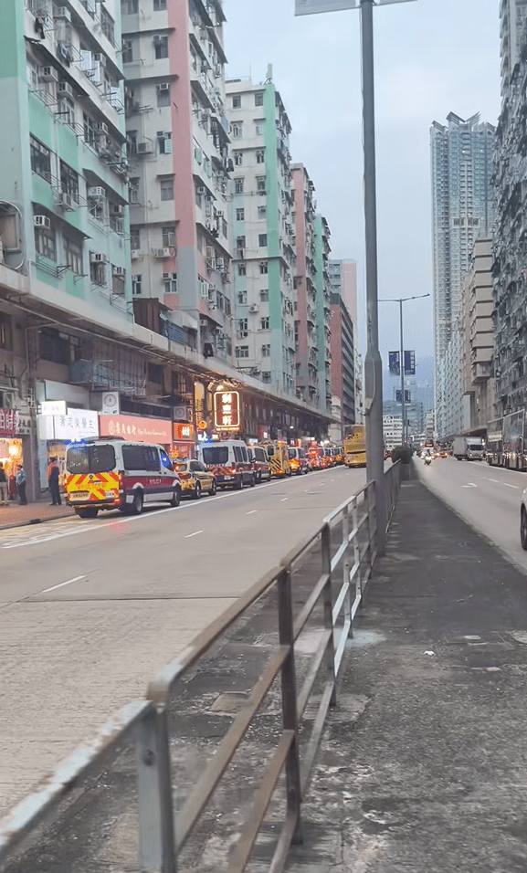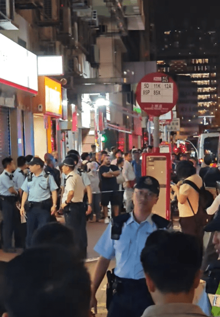 根據網上視頻可見,警方在現場拉起封鎖線阻止市民靠近大廈,多名警員亦在場戒備。