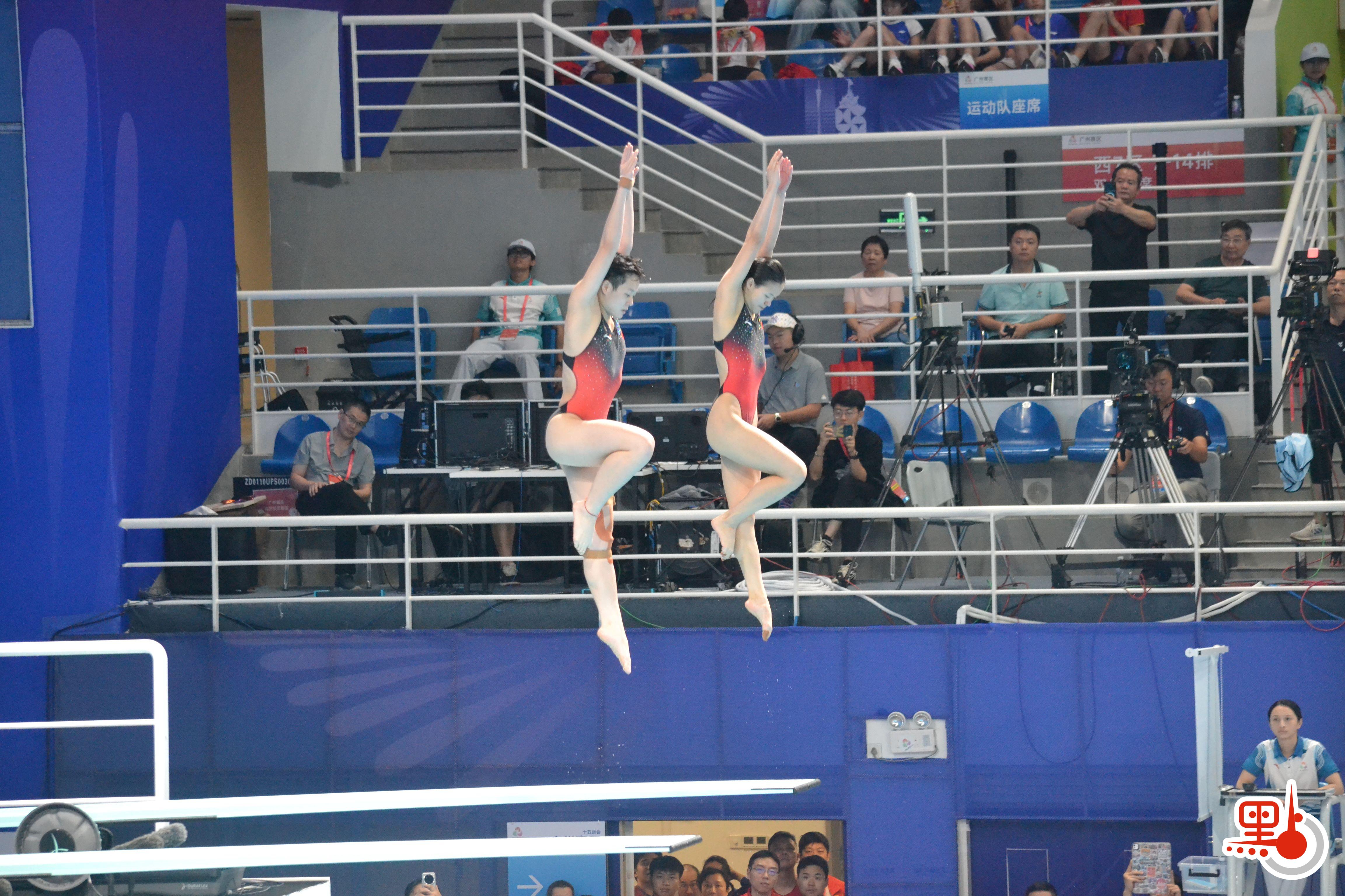 【點新聞報道】今日(7日),十五運會跳水比賽迎來第6個比賽日,產生女子雙人3米板和男子雙人10米跳台兩枚金牌。在率先舉行的女子雙人3米板決賽中,廣東隊由奧運冠軍陳藝文和世錦賽冠軍林珊強強聯手,他們延續了此前團體賽和預賽中的強勢表現,以333.12分奪得冠軍,這也是廣東隊在本屆全運會上奪得的第5枚金牌。三屆世錦賽冠軍司雅傑和隊友龍藝萍奪得銀牌,上屆全運會該項目亞軍葉林希攜手隊友鄧夢圓收穫銅牌。