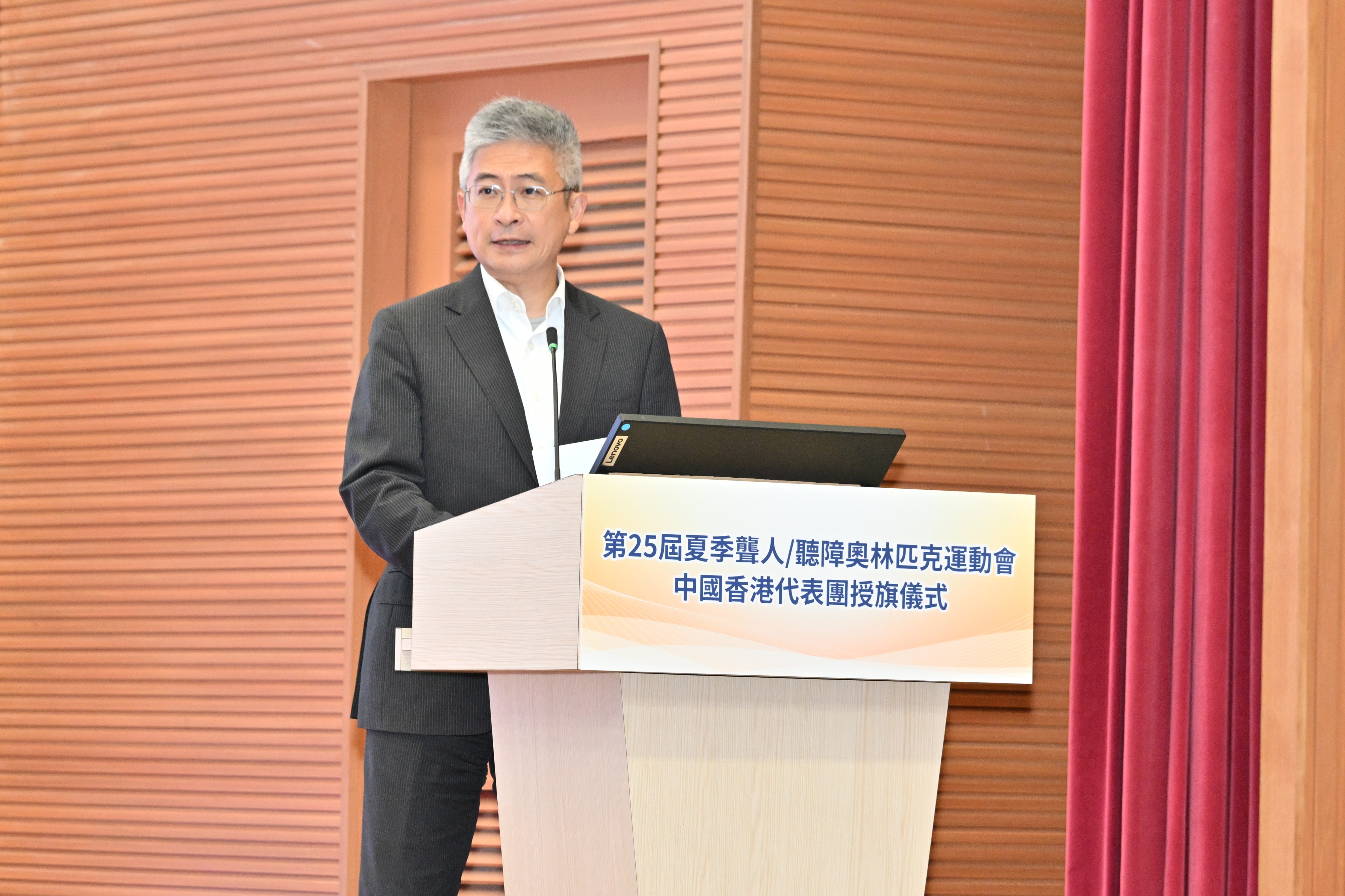 劉震在致辭中表示,政府一直支持聾人及聽障運動的發展,文化體育及旅遊局轄下的康樂及文化事務署透過「體育資助計劃」為聾體會提供資助,以推廣和發展相關體育項目。此外,藝術及體育發展基金(體育部分)也資助了參與本屆聾奧的運動員,協助他們備戰和參賽,從而盡展所長。劉震祝願所有運動員在聾奧賽事中充分發揮實力,並在爭取佳績的同時,享受比賽過程與觀眾的歡呼喝彩。