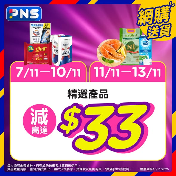 精選產品優惠券:11月7日上午10時準時開搶,適用於網購送貨訂單