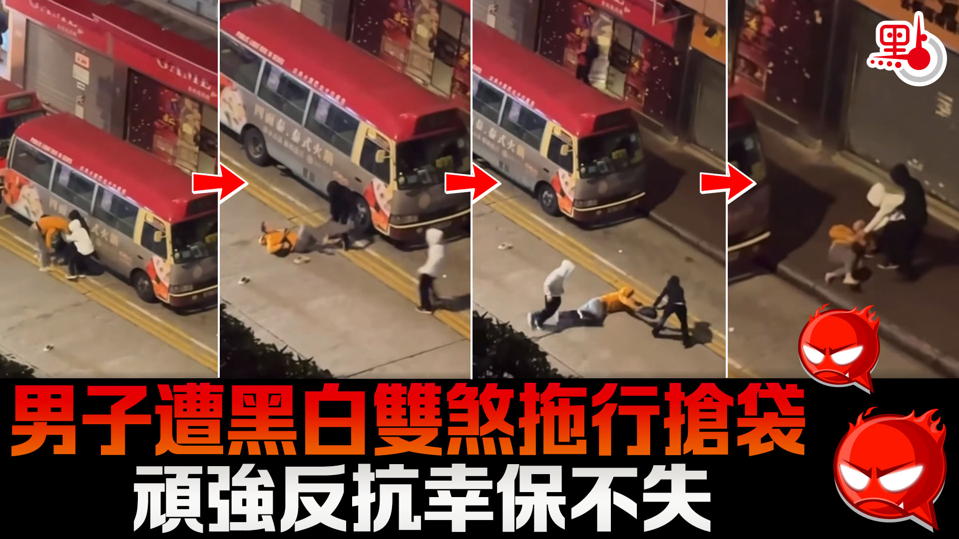 男子遭黑白雙煞拖行搶袋 頑強反抗幸保不失