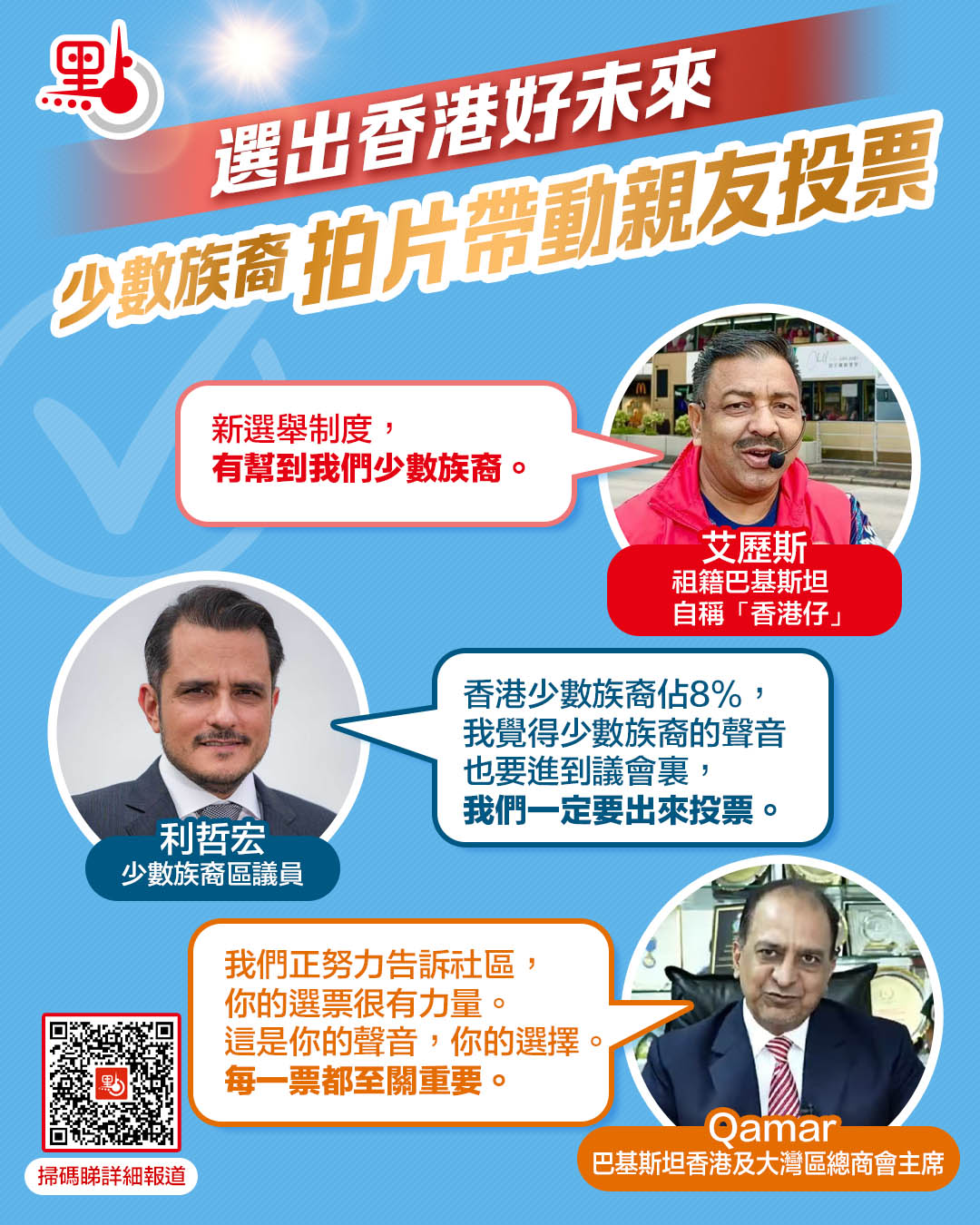 投票不僅是公民責任,更是市民行使權利,將心聲下情上達的關鍵途徑。在這個多元共融的社會中,少數族裔正以實際行動,為香港未來投下信心一票。正如受訪者指出,隨着更多選民尤其是少數族裔的參與,新選制的優越性將得以擴大和彰顯,為香港下一段新征程蓄力。