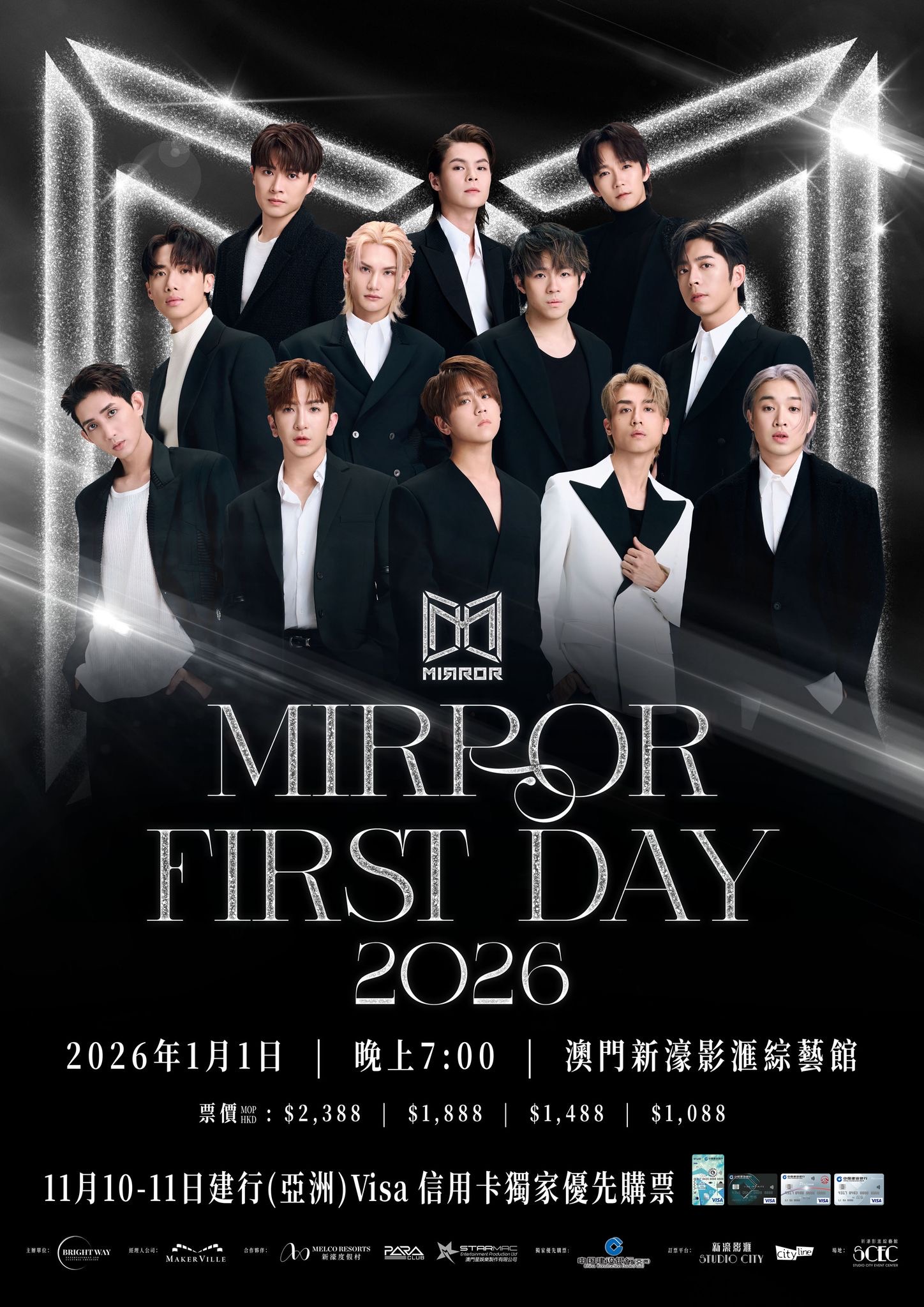 踏入元旦,再掀新一波鏡式風暴!MIRROR將1月1日這個重要日子奉獻予《MIRROR First Day 2026》演唱會,作為揭開2026年序幕的重磅專場演出,十二子將帶來全新舞台體驗,傾力跳唱多首耳熟能詳的經典金曲,為粉絲精心打造一個獨特而不可復刻的元旦日。