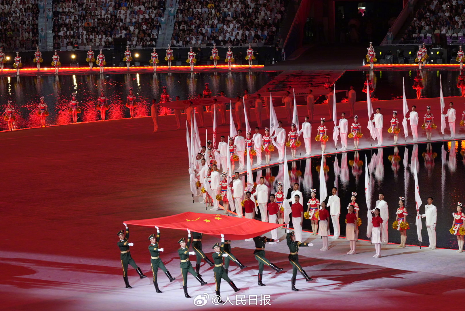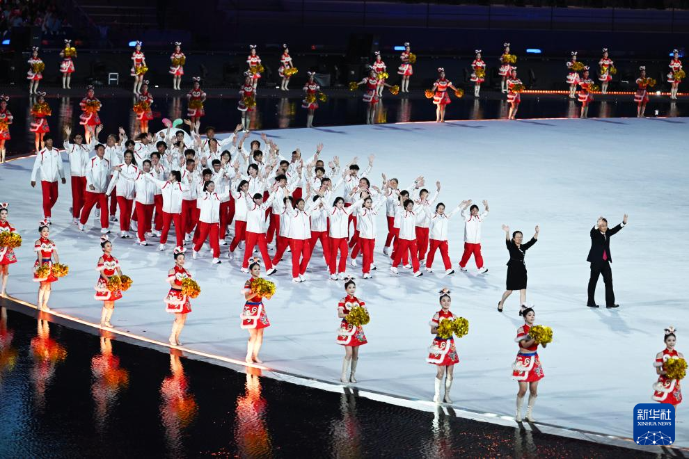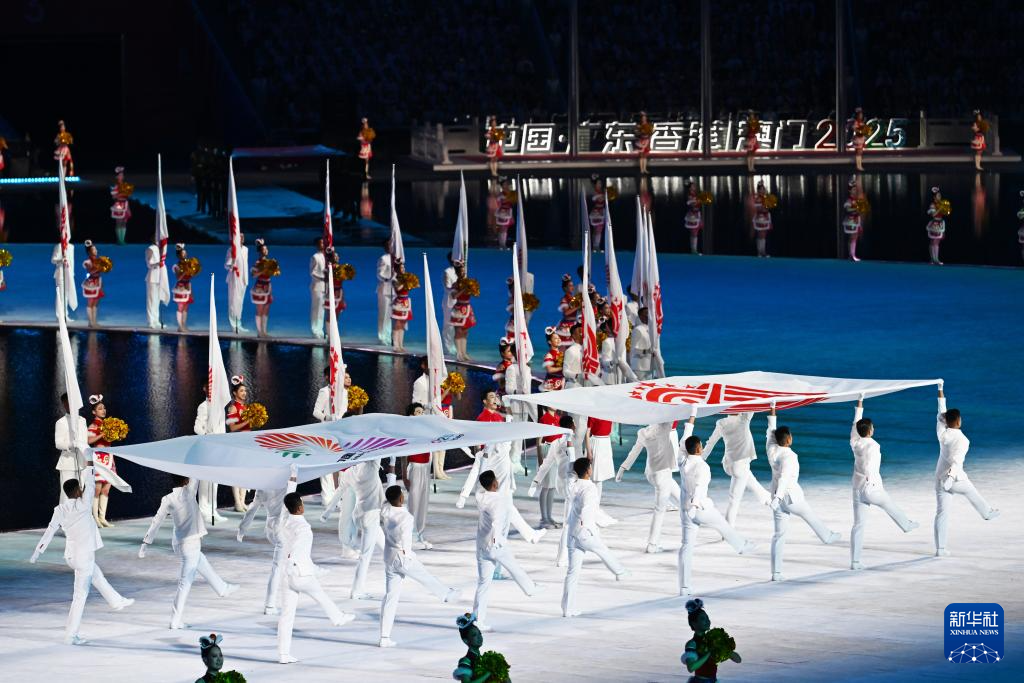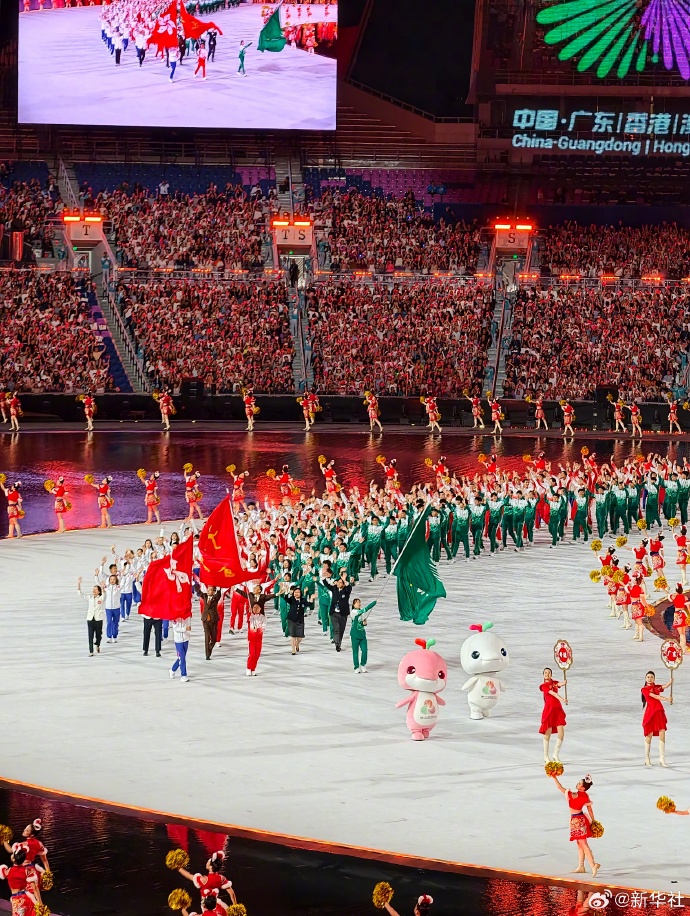 【點新聞報道】第十五屆全國運動會開幕式9日晚在廣東奧體中心盛大舉行,快隨點新聞一睹大美盛事。據央視新聞報道,中華人民共和國第十五屆運動會開幕式開始,迎中華人民共和國國旗、中華人民共和國運動會會旗、第十五屆全國運動會會旗入場。