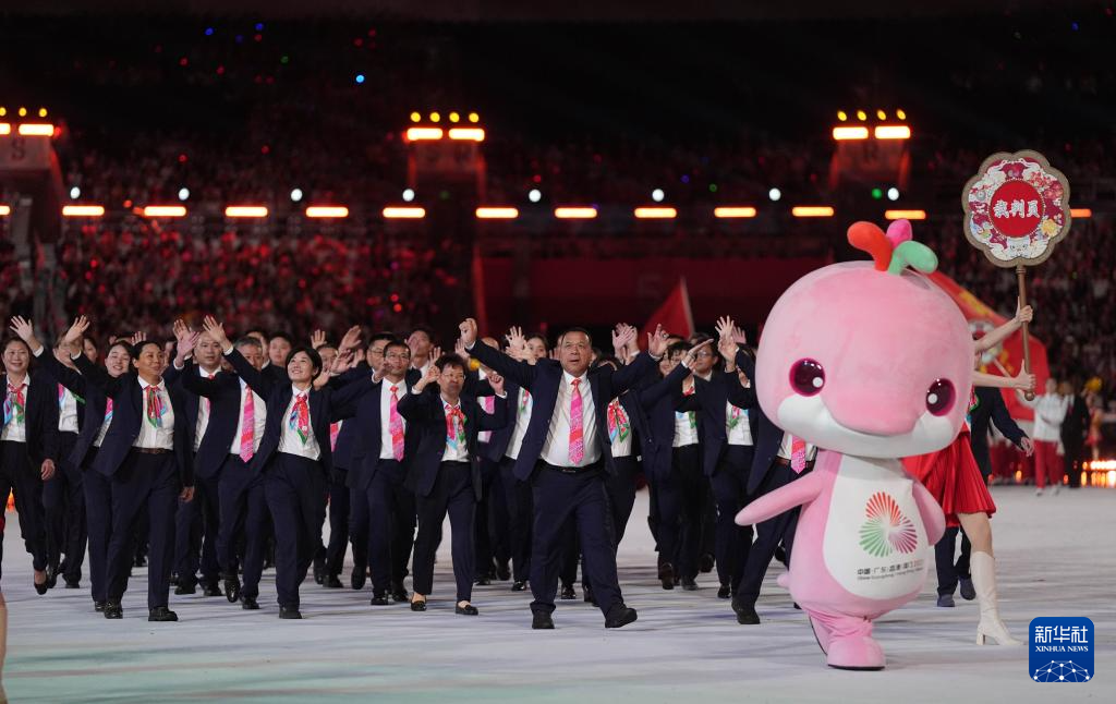 激情全運會,活力大灣區。首先走來的是裁判員代表方隊,6455名擁有豐富國內外大賽執裁經驗的裁判員,將嚴守賽風賽紀、秉持公平公正原則,廉潔盡責、依規執裁,保障各項比賽精彩圓滿。