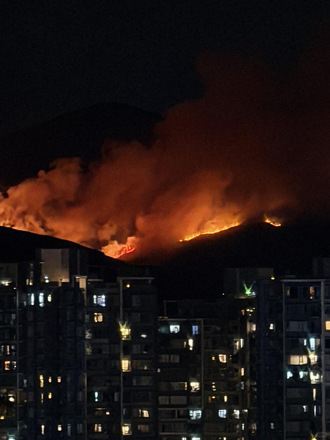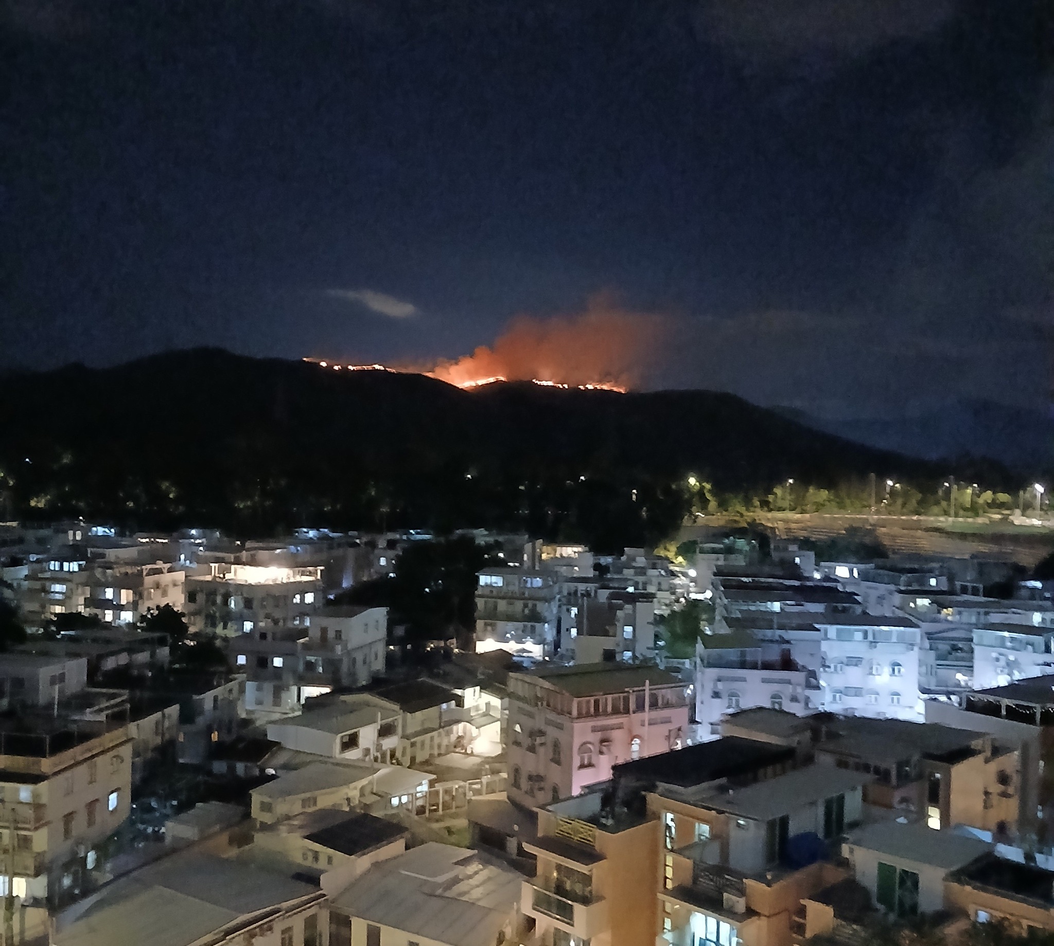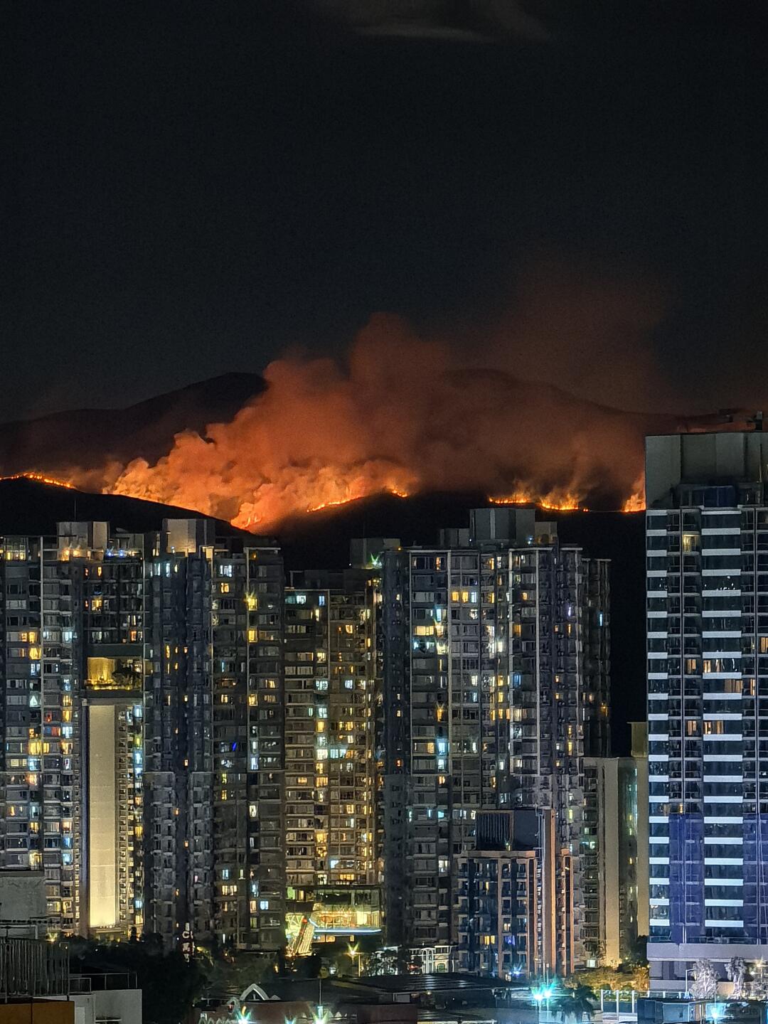 【點新聞報道】元朗發生山火。今日(9日)傍晚約6時18分,警方及消防先後接獲多宗報案,指掌牛山山頭起火。據報,山頭出現長長「火龍」,火勢猛烈;遠至元朗尚悅一帶屋苑以至深圳灣亦清晰可見。據了解,晚上9時許,山火火線長達500米。