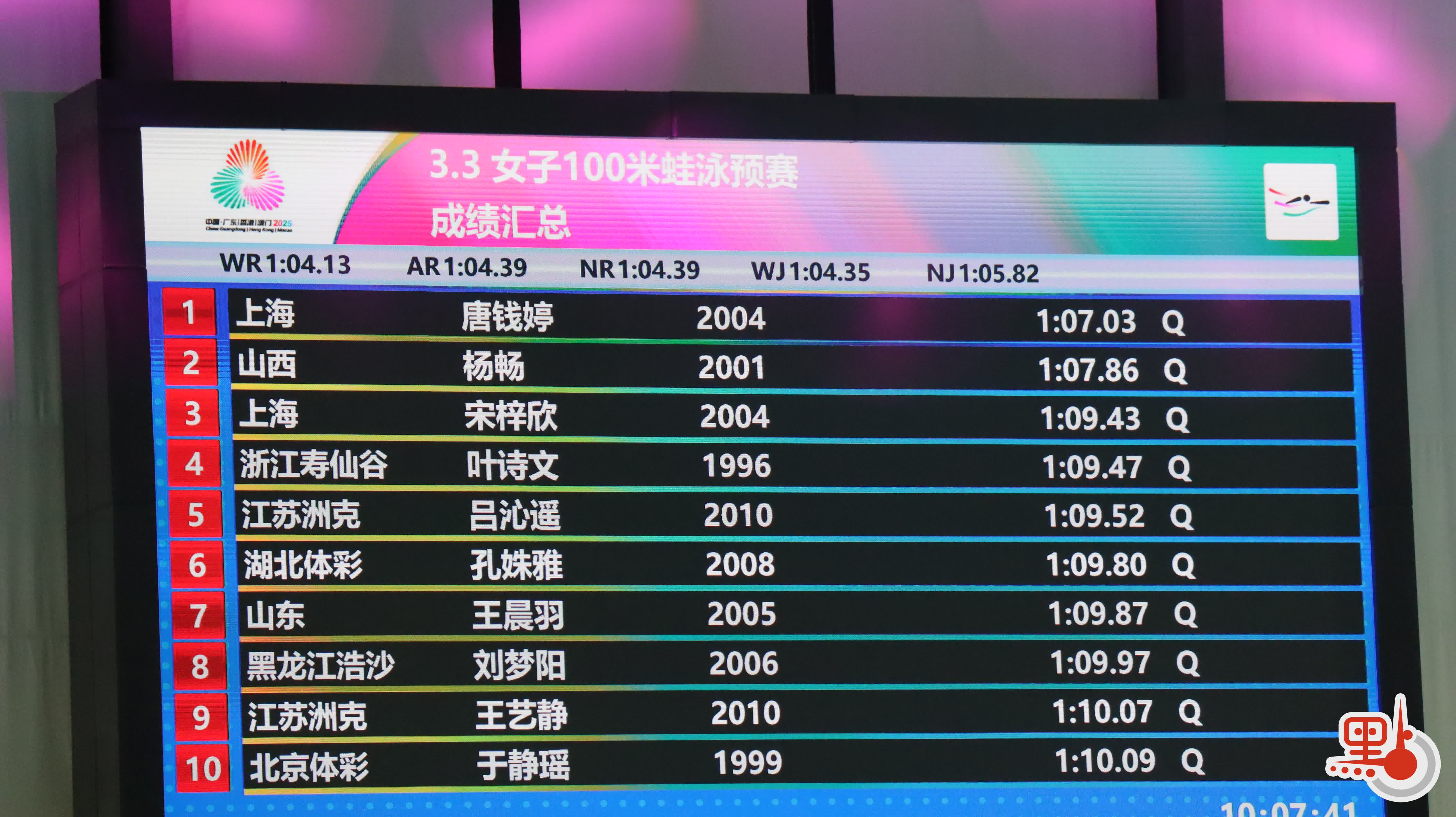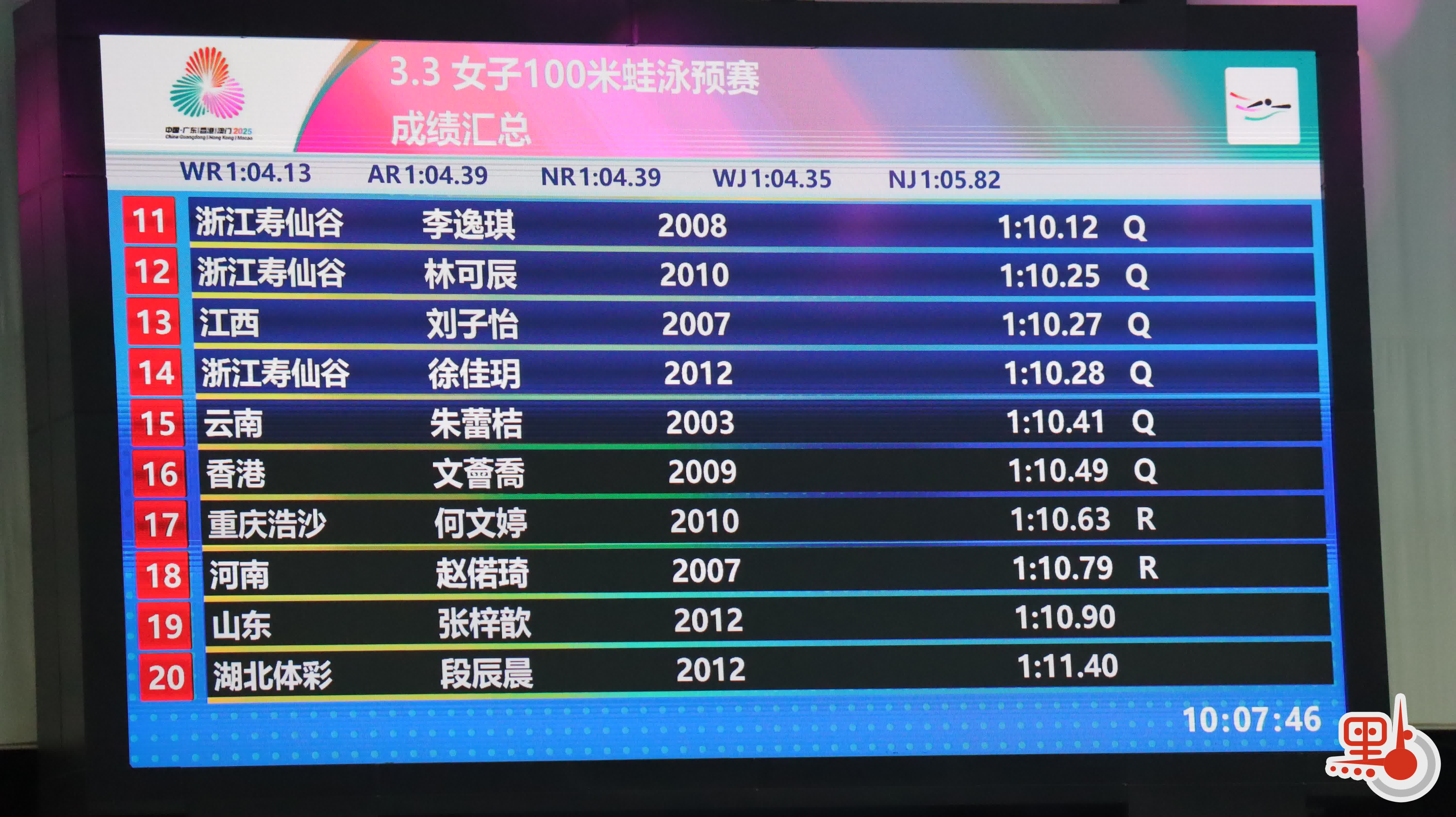 此外,來自香港隊的小將文薈喬也帶來驚喜。她在比賽中游出1分10秒49,最終排名第16位,驚險卡在晉級線上,搭上半決賽末班車。